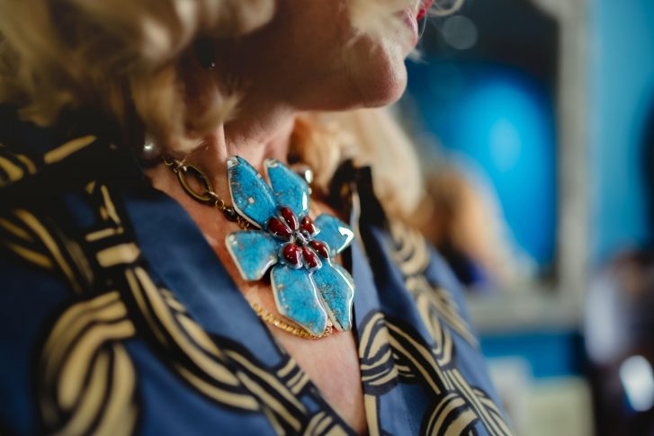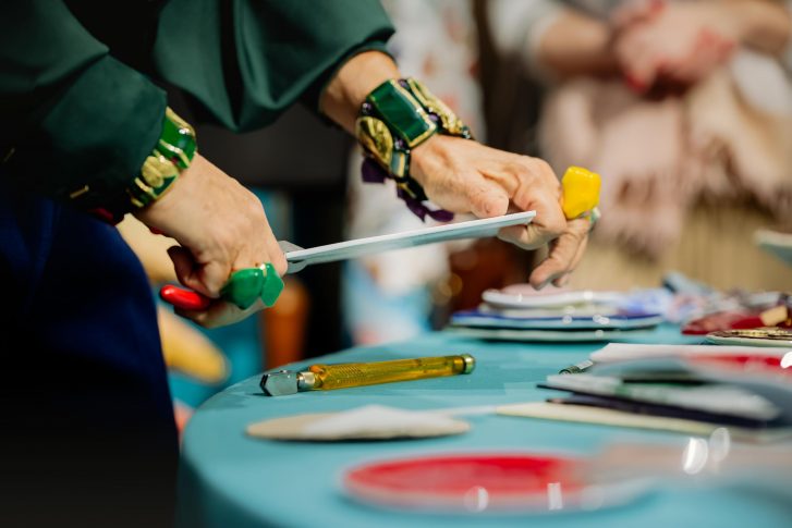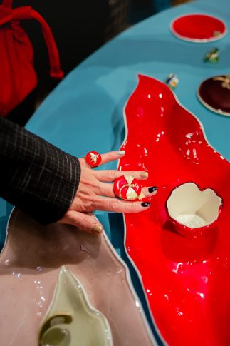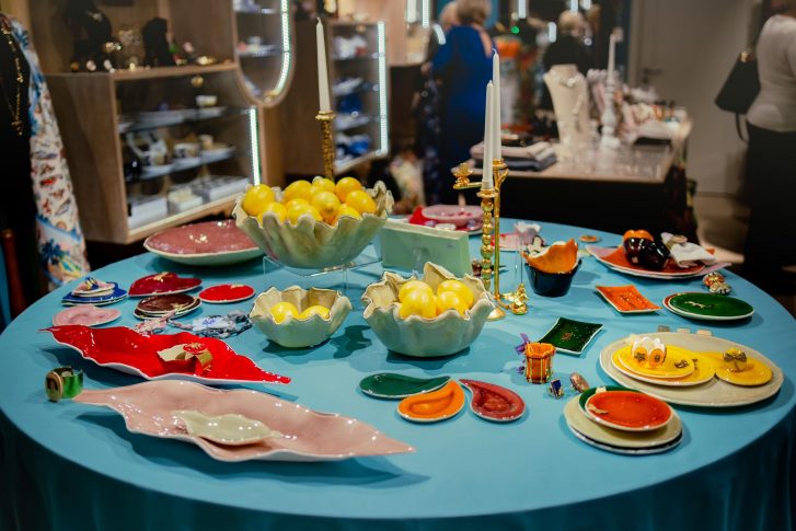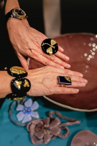 В день приезда знаменитого итальянского дизайнера в центре бутика установили стол, на котором были разложены разноцветные блюда и тарелки, браслеты (они же кольца для салфеток) и колье. Даниела Полетти лично встречала всех приглашенных. Ведь именно ради них она и прилетела буквально на пару дней в Ригу. В ходе вечера Даниэла Полетти не только рассказала историю марки, но и провела маленький перформанс, показав, как в своей мастерской она обращается с пластинами стекла и алмазным резцом. Гости задавали вопросы, с азартом принимая участие в фотоконкурсе и борясь за награды, разумеется, из коллекций Vetrofuso. Самыми выразительными изделиями были признаны кольца и браслеты со стрекозами, скарабеями, бабочками, камеями и блюда с золотыми инициалами или словами-посланиями, выведенными рукой мастера: Love, Amore, Merci, Home, Dolce Vita, Noel…