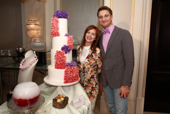 Шеф-повар отеля Давид Эммерле (David Hemmerle) подготовил безупречное праздничное меню – пока гости собирались, им было предложено шампанское, устрицы, закуски с черной икрой и фуа гра. Банкетное меню состояло из фирменного салата из камчатского краба, гребешков с ботаргой и соусом-эмульсией из мидий, телячей вырезки и выбора десертов. Рафаэль Грассо (Raffaele Grasso), шеф-кондидетр Four Seasons Hotel Moscow, представил гостям невероятную коллекцию свадебных тортов выполненных в разных цветах и стилях — от классического многоярусного белого торта, до экстравагантного черного с золотым декором.