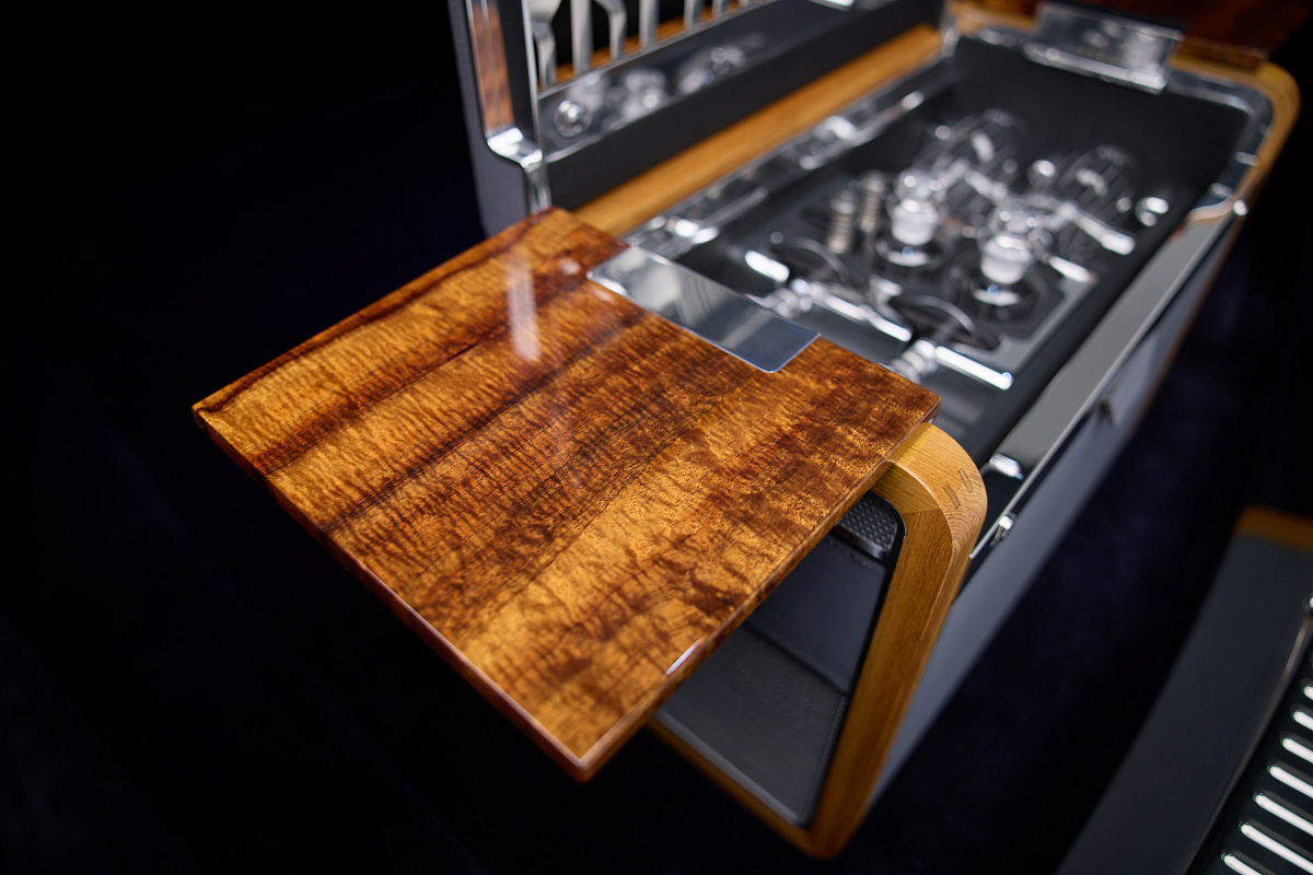 Автомобиль дополняет персональный набор для пикника, изготовленный в единственном экземпляре. Материалы сундука повторяют отделку салона: дерево коа, нержавеющая сталь и седельная кожа серого цвета. Элементы из нержавеющей стали расположены как снаружи, так и внутри корзины для пикника, а на плашках выгравированы имена владельцев: «Лаура & Джек Бойд Смит-младший». На изготовление набора ушло более 500 часов. В него входят бокалы для вина ручной работы и декантер венгерской фабрики Ajka Crystal factory, которая славится своими традиционными техниками, а также изготовленные в Англии приборы из нержавеющей стали и фарфоровые тарелки от Wedgwood.