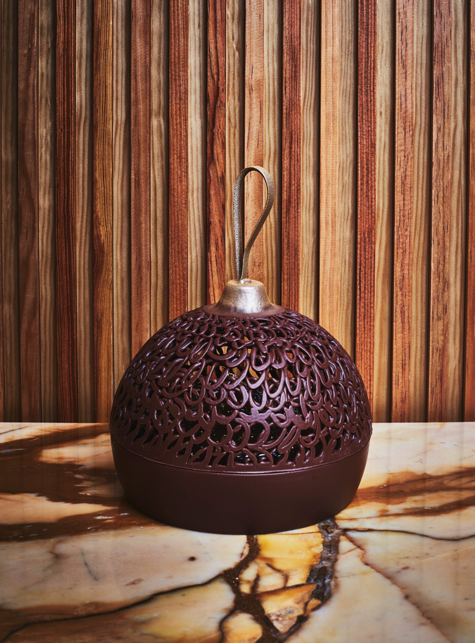 Хрустящий шоколад с основой из пьемонтского фундука и добавлением печенья из лесного ореха, тягучей карамели с морской солью, Мадагаскарского заварного крема из молочного шоколада и нежного мусса.— €95