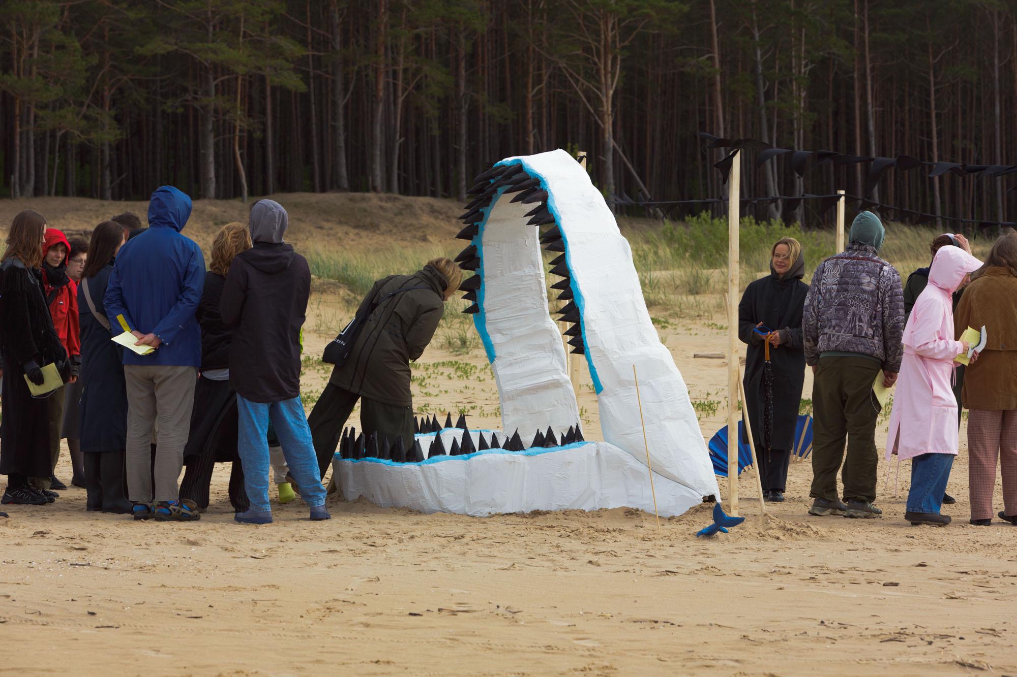 «Солнечный зонт не защищает от солнца» — дипломная работа Марты Мадары Грантиньи, выпускницы отделения сценографии Латвийской художественной академии, — впервые была представлена 23 мая на пляже в Гарциемсе. Интимная форма спектакля-прогулки позволила зрителям — как профессионалам театральной среды, так и просто любопытствующим — стать соучастниками тонкого, почти физического переживания пространства и уязвимости.