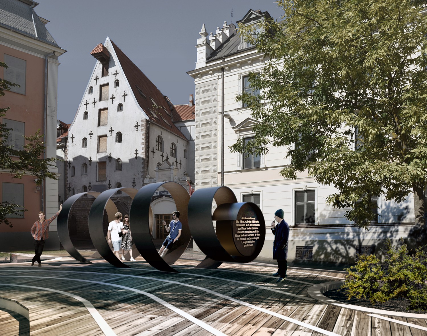 — Помимо самой площади Альберта, которая является пересечением разных исторических событий и эпох, было интересно и конкурсное задание, многообразие его целей – сохранить исторический контекст, одновременно сделав площадь местом отдыха рижан и частью города, привлекательной для туристов, а также органично интегрировать новый элемент – мемориальный объект А.Кунце. Решить поставленную задачу помогла идея о волне как об объединяющем мотиве. Волны – как слои столетий, как историческая спираль, как некогда существовавший символ порта, как метафора времени. «Волны» деревянного покрытия вокруг «Рижского корабля» напоминают дощатый настил рижских средневековых улиц –, и одновременно делают это место теплее, приятнее для человека. В свою очередь, мемориальный объект в честь А.Кунце находится на краю площади, не мешая ее композиции, но, поскольку это место, где происходит особенно интенсивное движение, объект будет заметен. Спираль как бы образует портал, через который можно будет войти на площадь.