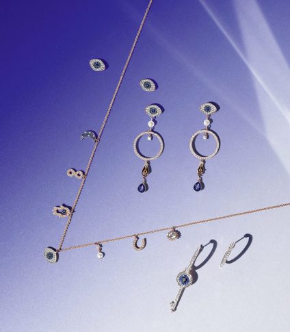 Коллекция прославляет креативность и мастерство Swarovski и наше обещание помогать женщинам во всём мире выражать их индивидуальность, блистательно выглядеть и отлично себя чувствовать. Звёздные силуэты усыпаны сверкающими символами таро, знаками и астрологическими мотивами. Они подарят сияние всем женщинам, каким бы ни был их стиль. Многослойные утончённые подвески на длинных цепочках и колье, дерзкие коктейльные кольца, изящные украшения и разнообразные декорированные серьги предоставляют женщинам возможность экспериментировать и демонстрировать их внутренний мир в любой обстановке. Насыщенные оттенки полуночной синевы и лилового цвета с ослепительными мерцающими эффектами придают глубины осенним и зимним образам. А современные новогодние вариации на тему монохромных украшений дополнены потрясающими зелёными, красными и синими акцентами.