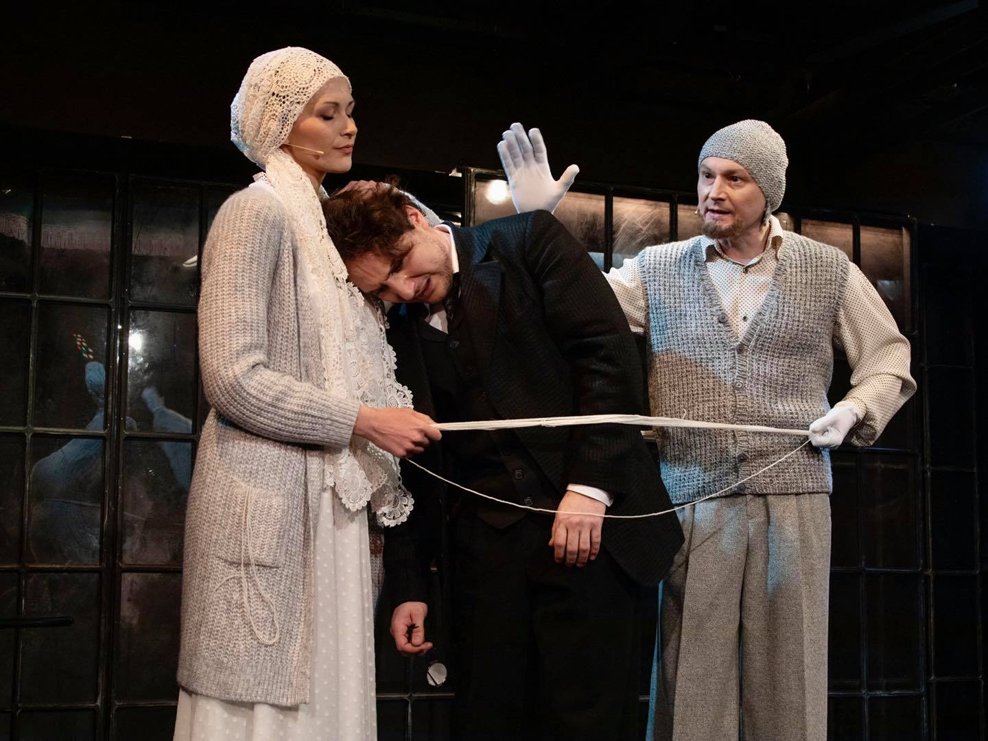 В московском спектакле, созданном Натальей Ковалевой, ту же долгую жизнь проживает за два с половиной часа Эльдар Трамов, один из самых талантливых молодых вахтанговцев (наши зрители видели его Якубом Кацем в «Нашем классе» и Креонтом в «Царе Эдипе»). Одну из красок ему подсказал композитор Фаустас Латенас: «Он всю жизнь свою просвистел, понимаешь? Он свистел всю жизнь. Легко, как снег, который тает, не доходя до земли». Увы, до премьеры Латенас не дожил, и постановка, над которой он начинал работать, посвящена его памяти.