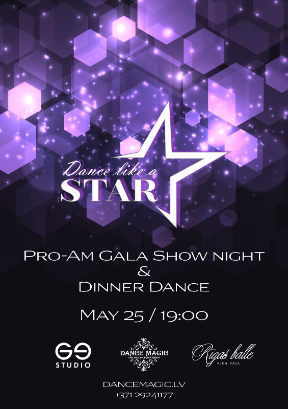 Организаторы гала-вечера Dance Like a Star (Танцуй, как звезда) подготовили для гостей яркую и зрелищную шоу-программу: на главной сцене мероприятия пройдут показательные выступления мировых звёзд спортивных бальных танцев, профессиональные танцоры исполнят номера из мюзикла “Мулен Руж”, а также со специально подготовленным музыкальным сюрпризом выступит певица и патронесса «Рижского бала» Натали Тумшевиц. Особым событием вечера станет первая церемония Dance Magic Award – торжественное награждение лучших танцоров Латвии. В танцевальной части вечера гости смогут принять непосредственное участие — во время музыкальных пауз на танцполе в живом исполнении прозвучат самые известные композиции Фрэнка Синатры, Луи Армстронга и Билли Холидей. Ведущими гала-вечера “Dance Like a Star” станут многократная чемпионка Латвии по спортивным танцам и победительница шоу “Танцуй со звездой” Александра Курусова и известный шоумен Роберто Мелони.