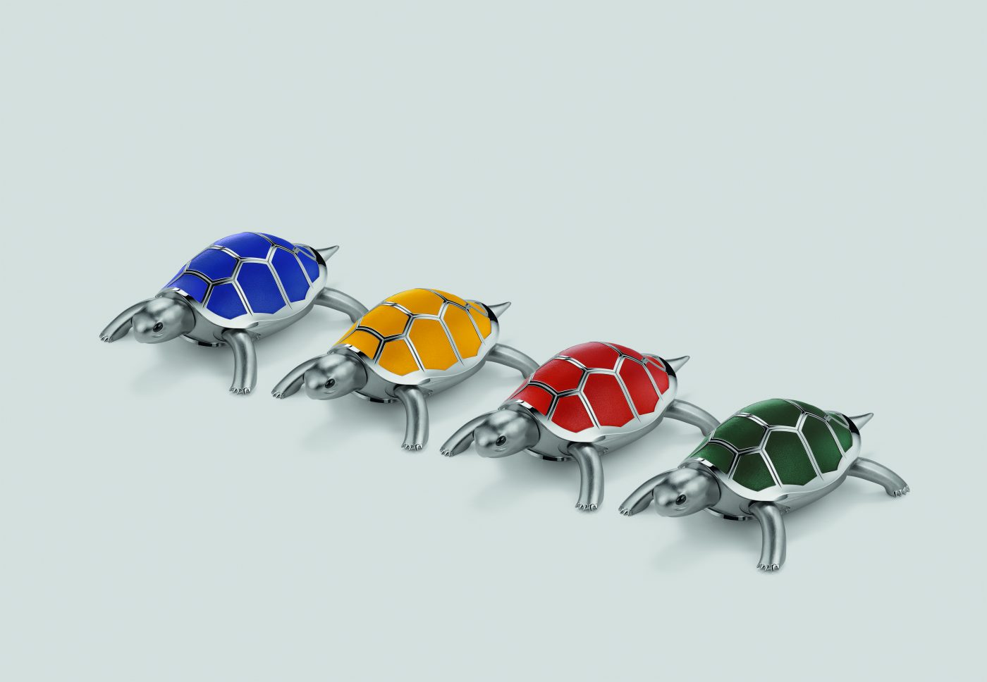 Когда появилась идея сделать автоматон-черепаху с певчей птицей на спине, выбор партнера для реализации этого проекта был очевиден: компания Reuge, принимавшая участие в создании «Музыкальных машин» MB&F, имеет большой опыт в производстве не только музыкальных шкатулок, но и механических птиц. В свою очередь Reuge обратилась к специалисту по автоматонам Николя Курту с просьбой разработать механизм, максимально точно воспроизводящий движения черепахи.