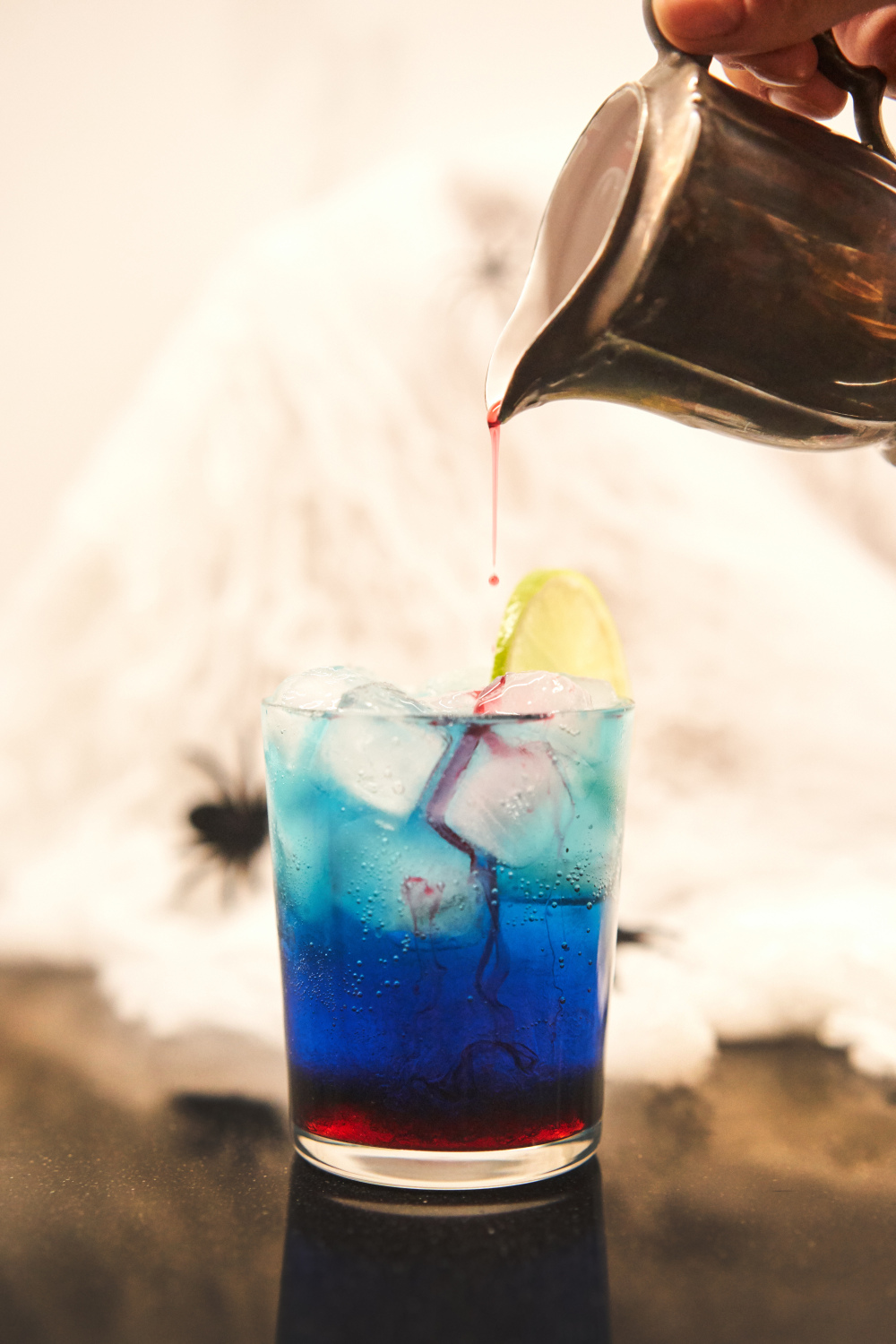 4) Перед подачей аккуратно добавьте гренадин, чтобы образовались красные «кровавые» разводы.