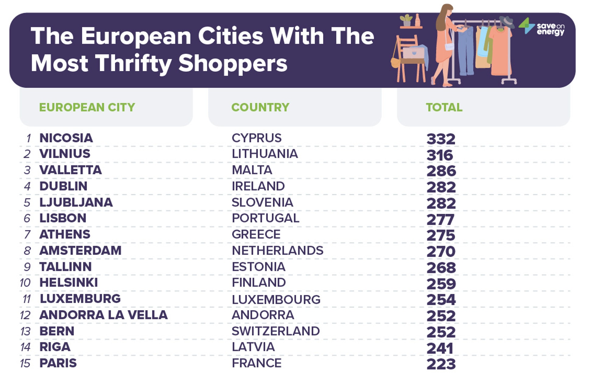 Столица Кипра Никосия — лидер среди европейских городов с самыми экономными жителями. На втором месте находится Вильнюс (Литва), получивший наибольшее количество баллов за покупку доступной одежды и обуви на Etsy. Самый низкий балл в рейтинге наименее бережливого города занимает столица России Москва. Что, впрочем, и следовало ожидать.