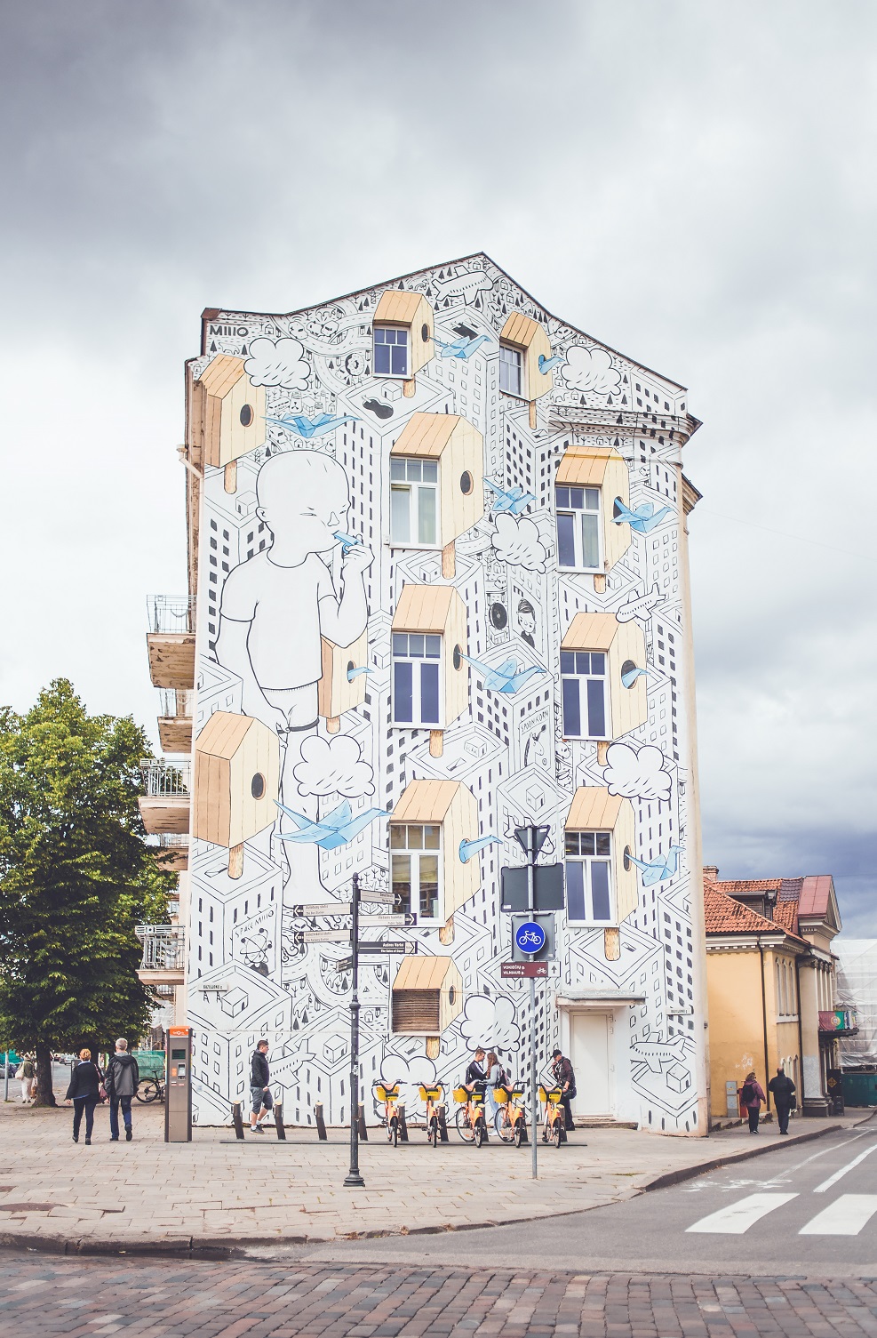 Open Gallery. Это совместный проект LOFTAS — одного из самых активных творческих пространств города. Миссия проекта — стимулировать осведомленность общественности об искусстве, размещая картины, скульптуры и инсталляции в различных общественных местах. Идея проекта, объединившая талантливых литовских и зарубежных художников, превратилась в широко признанную международную галерею уличного искусства, скульптуры и инсталляций под открытым небом. С произведениями искусства, разбросанными по всему городу, он предоставляет множество возможностей для фотографирования в социальных сетях.