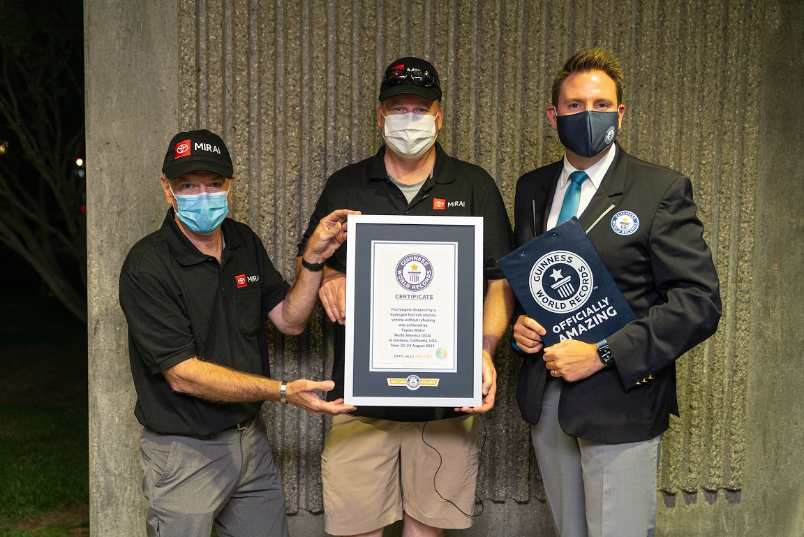 Официальная регистрация рекорда проходила под пристальным наблюдением Книги рекордов Гиннесса, в соответствии с их строгими нормами и требованиями. 23-24 августа 2021 года во время поездки единственным выхлопом Mirai XLE была вода. Эксперт по рекордам Гиннесса Майкл Эмприк подтвердил герметичность бака Mirai в начале и в конце поездки.