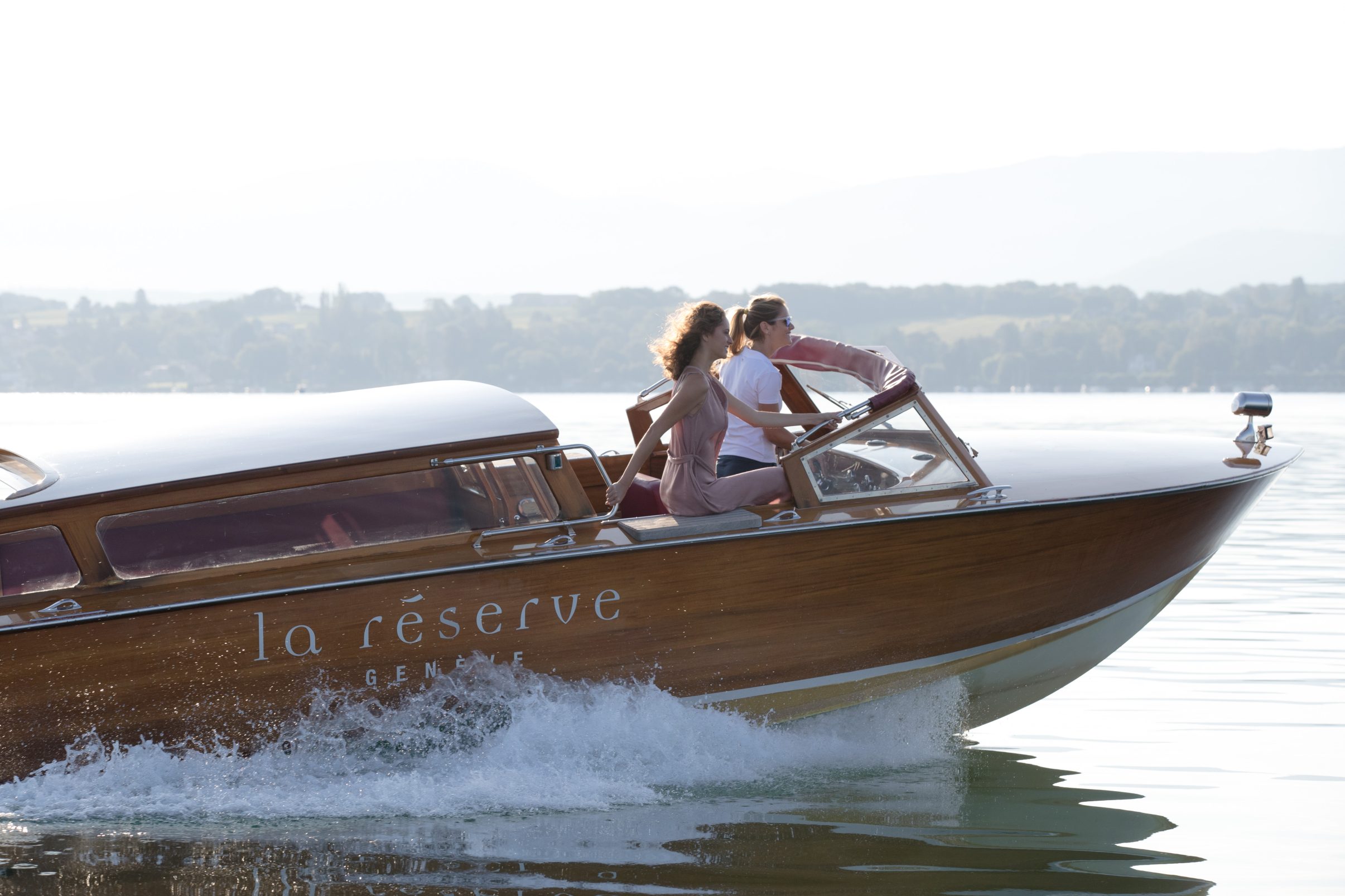 Добраться до La Réserve Genève — Hotel, Spa and Villa из центра Женевы в теплое время года можно на элегантном моторным катере отеля в венецианском стиле: капитан будет ждать гостей на пристани на набережной Quai Fleuri или на противоположном берегу озера. Услуга трансфера на Motoscafo бесплатная для гостей отеля и предлагается при хорошей погоде по предварительному бронированию за 45 минут до отправления.