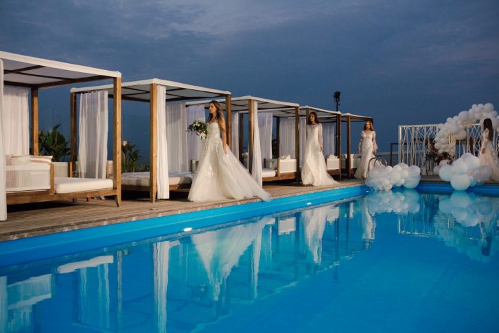 Во время вечеринки состоялся показ коллекций свадебных и вечерних платьев сезона 2019 г. от брендов Katya Katya London и Modeca, которые наглядно продемонстрировали тренды в свадебных нарядах следующего сезона. В настоящее время невесты во всем мире для своего свадебного торжества все чаще выбирают платья пастельных оттенков розового, фиолетового, голубого и не боятся отказываться от вечной, но уже изрядно надоевшей классики — снежно-белых свадебных платьев. Такая тенденция сохранится и в грядущем сезоне. Примечательно, что главная отличительная черта стиля рижского дизайнера Кати Шехуриной, которая уже несколько лет создает богемные, легкие и элегантные свадебные платья, теперь развивается и во всем мире. Так, например, часть представленной в салоне 6. Septembris коллекции свадебных нарядов марки Modeca составляют именно платья в стиле бохо. «Сегодня невесты устали от пышных и тяжелых платьев «принцесс», какими бы красивыми они ни были, и отдают предпочтение легкости, нежности и элегантности», — рассказывает основательница салона 6. Septembris Айя Нагле.