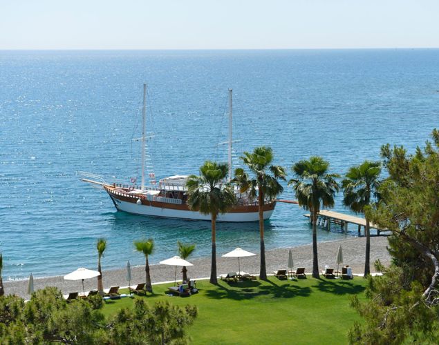 Городок Club Med Palmiye расположился в самом живописном уголке Турции: позади – Таврические горы, а впереди – голубое Средиземное море. Роскошная частная пляжная линия протяженностью около километра ждет любителей понежиться на солнышке. Уютные бунгало органично вписаны в природу предгорья. Сам курорт буквально утопает в зелени: из общей площади в 18 гектаров 8 занимают душистые сосны, банановые пальмы, апельсиновые и лимонные деревья. Количество видов растений и цветов доходит до 1000. Недаром место сертифицировано организацией Green Globe и даже носит неофициальное звание национального парка.