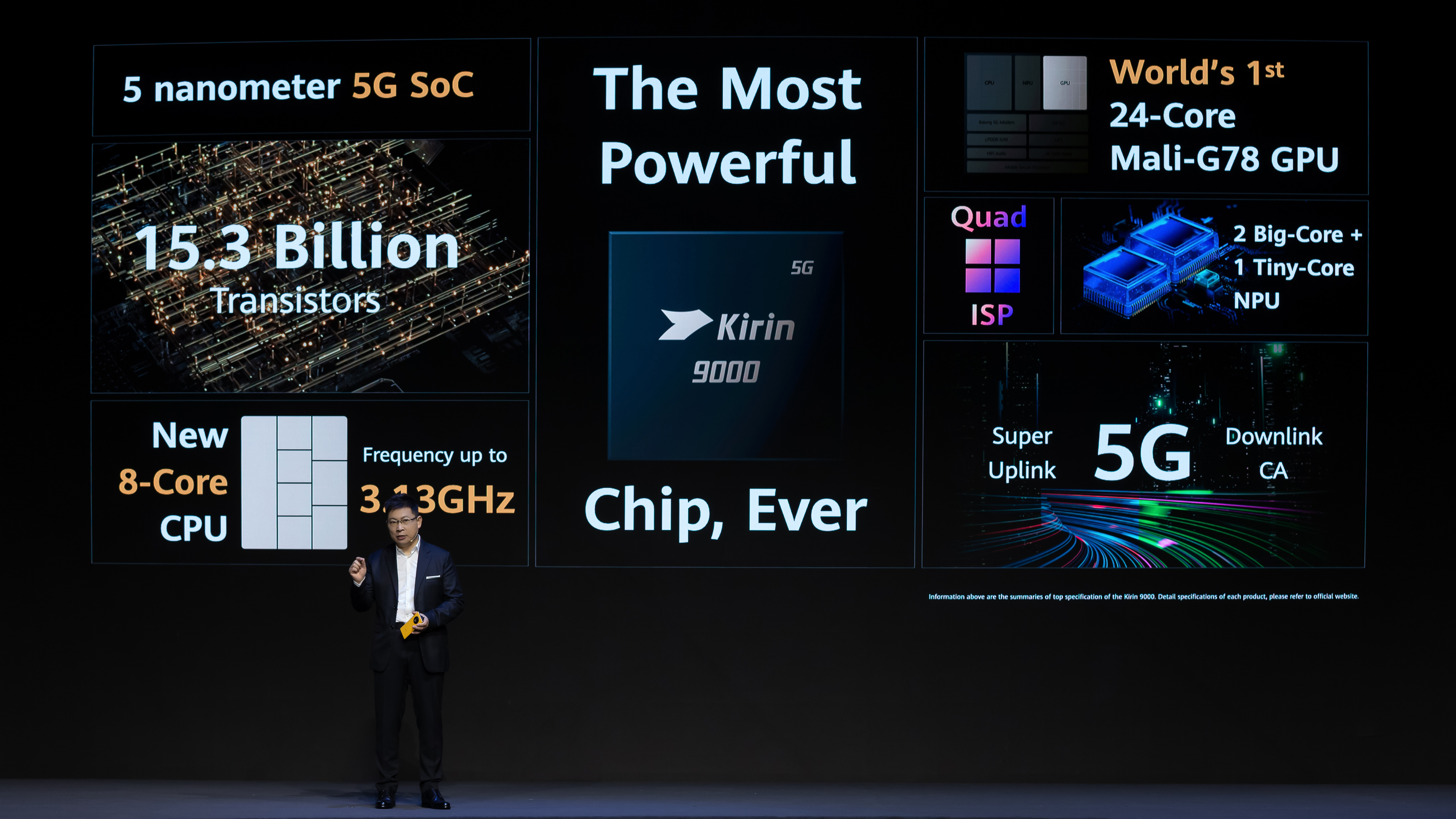 В телефоне интегрированна микросхема Kirin 9000 для обработки больших массивов данных 5G, а также для множества других интенсивных вычислений и задач одновременно. По словам производителя, это самый умный процессор поколения 5G на рынке, превосходящий по мощности и эффективности своих предшественников.