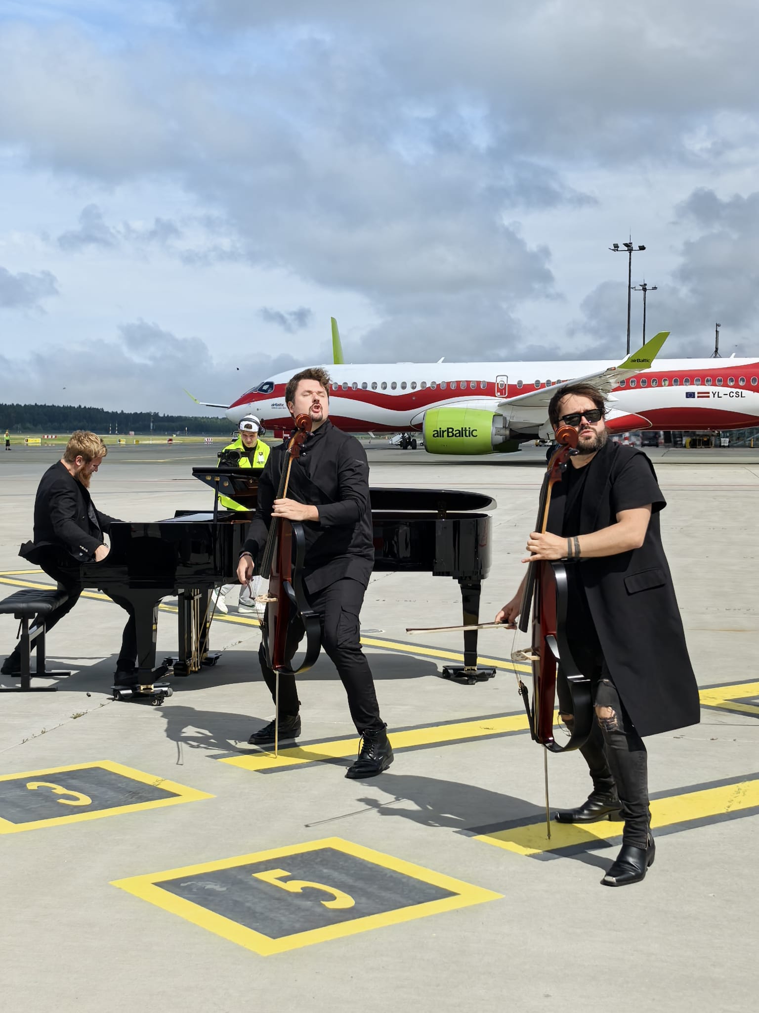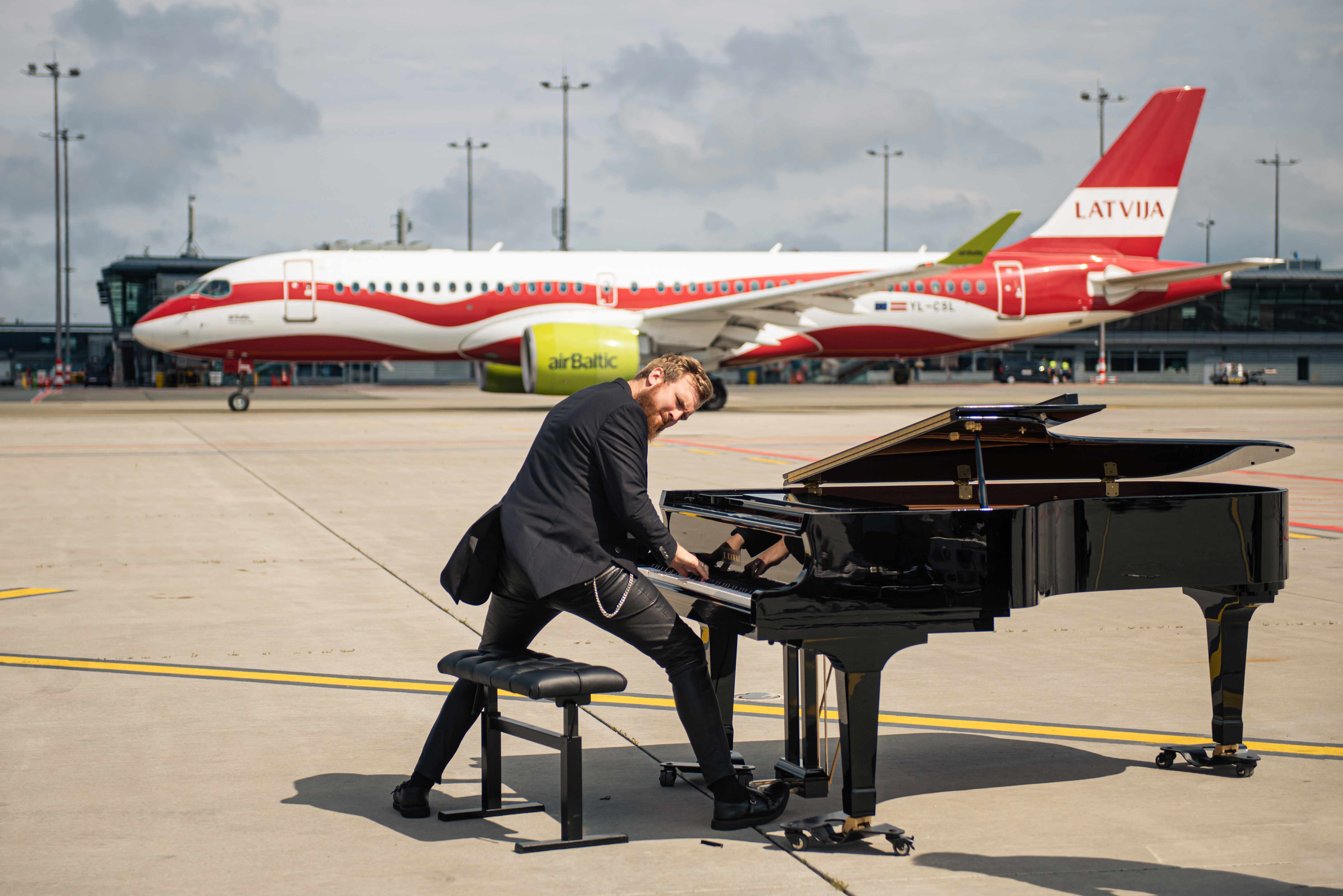 15 июля на территории аэропорта RIX было оборудовано импровизированное сценическое пространство с концертным роялем и другими музыкальными инструментами. В ходе съёмки прозвучали две композиции: песня Керри из мюзикла «Сестра Керри» в исполнении Инессы Галанте в сопровождении юного Густава Калейса, а также одно из самых узнаваемых произведений группы DAGAMBA — “Symphony — Du Riechst So Gut”, которое наполнило взлётное поле энергией и мощью.