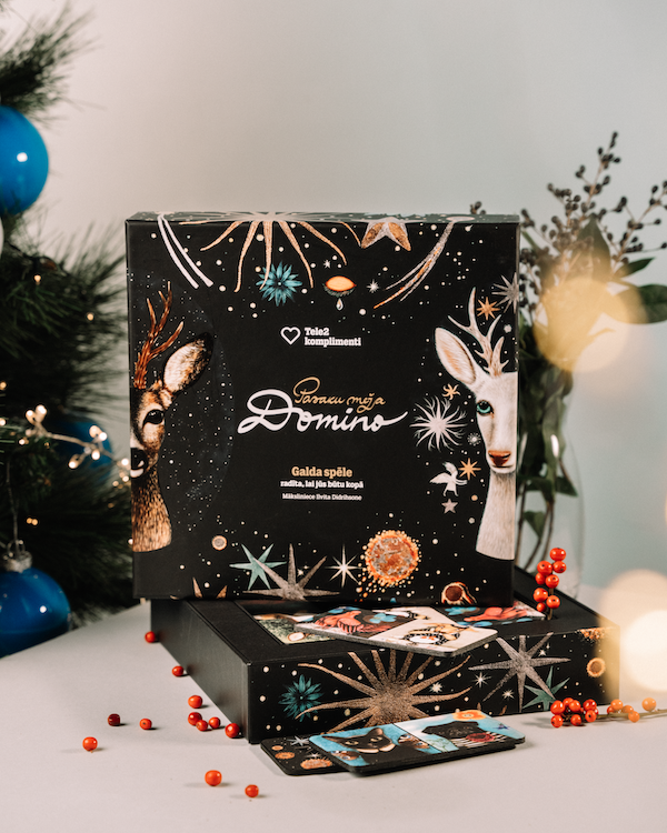 В предыдущие годы к Рождеству Элита Патмалниеце создала специальный дизайн для игры “Saulgriežu Riču Raču”, Кристине Луизе Авотиня проиллюстрировала “Цирк мечты”, а Илвита Дидрихсоне – “Домино из сказочного леса”.