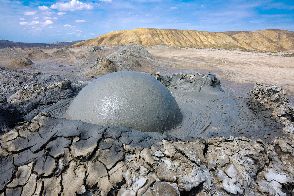 Невероятно, но факт: больше всего грязевых вулканов в мире сосредоточено неподалёку от Баку. Эту территорию можно описать как нечто булькающее, пузырящееся, и именно здесь находится самый большой грязевой вулкан в мире. Эти инопланетные пейзажи своим происхождением обязаны движению тектонических плит, дающих свободу природному газу, который местами воспламеняется. Существует поверье, что именно с этим явлением связано зарождение зороастризма в Азербайджане около двух тысяч лет назад.