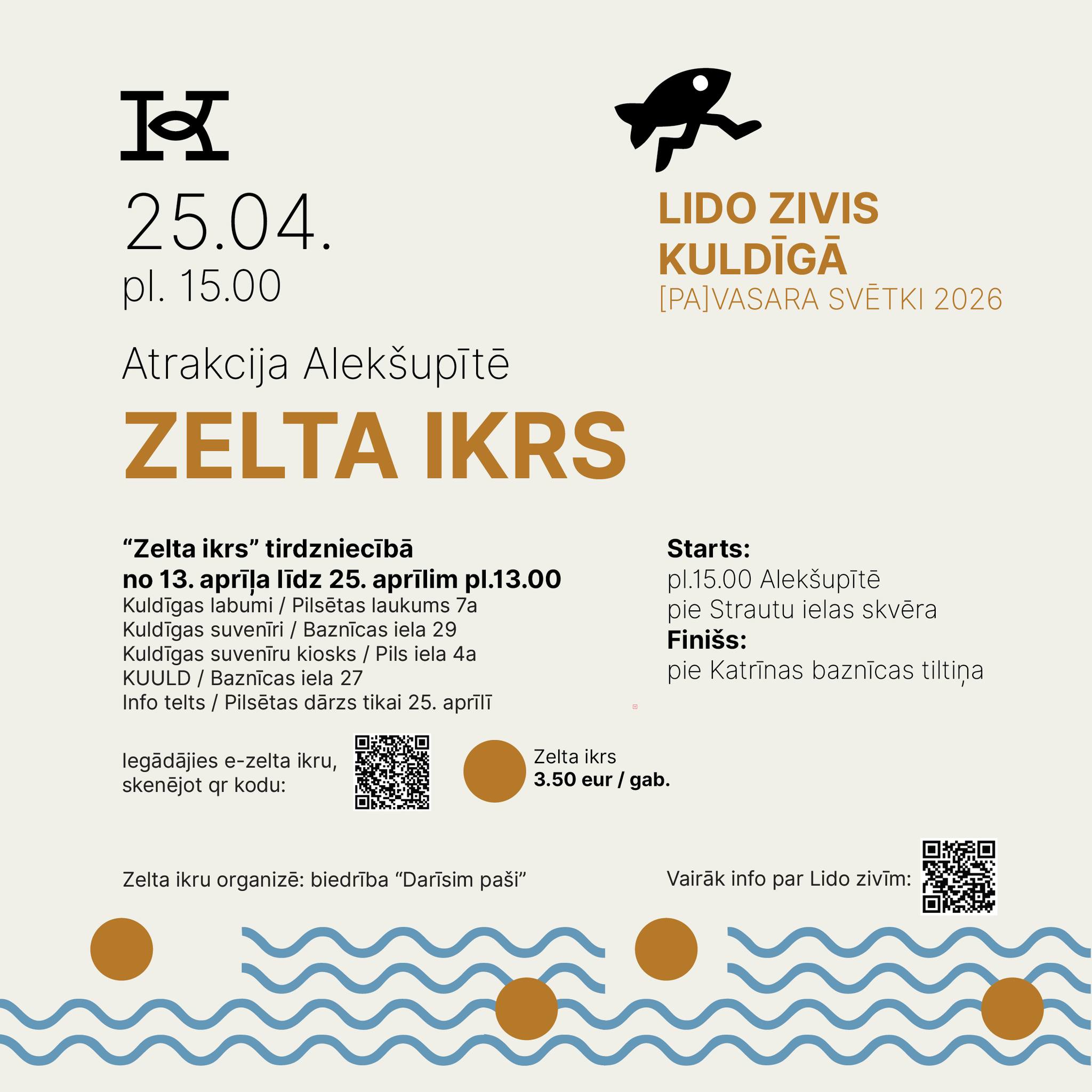 25–26 апреля в Кулдиге пройдут весенние праздники «Летают рыбы в Кулдиге 2026», приглашая гостей увидеть одно из самых необычных природных явлений Латвии и открыть для себя туристические возможности города и региона.