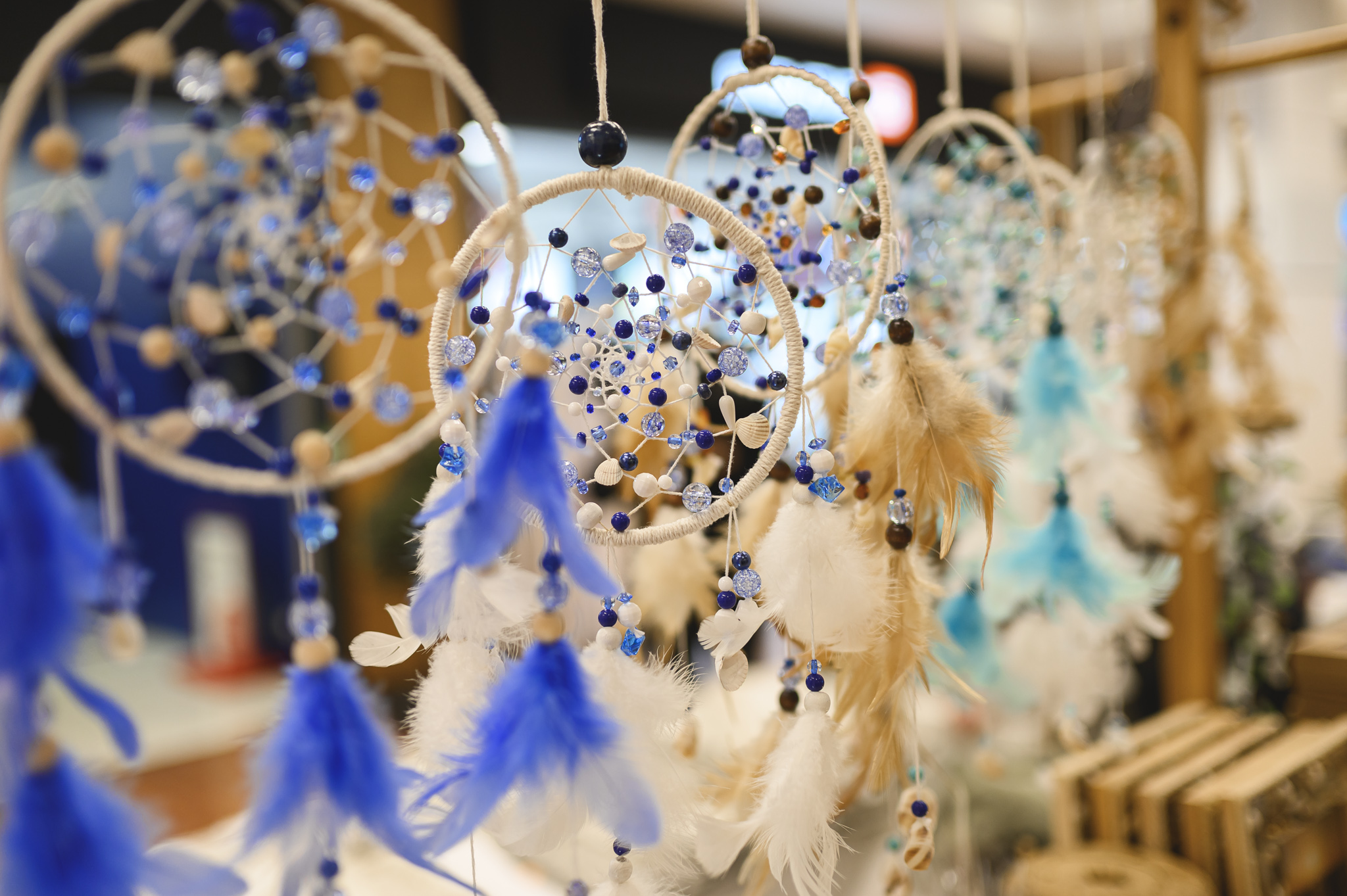 На ярмарке можно найти также изделия из войлока, украшения из бисера, мешочки с лавандой, кухонные принадлежности из дерева, корзины и льняные салфетки. Кроме того, в ассортименте представлены картины из натуральных материалов с морскими пейзажами, свечи из пчелиного воска, керамика и, конечно же, рождественские украшения.