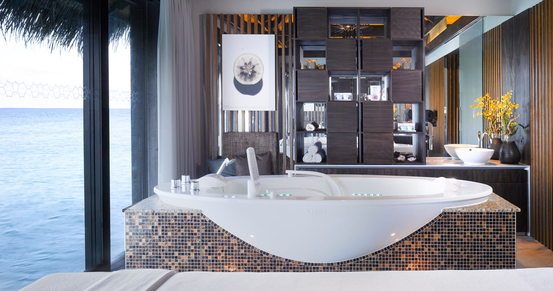 Уединенность спа-комплексу курорта Velaa Private Island придает его расположение на виллах на воде, в некотором удалении от острова. Комплекс располагает шестью спа-сьютами, рассчитанными на спа-программы для одного гостя, и двумя спа-сьюта для двоих. Уникальным местом на Мальдивах, где жар тропического солнца можно сменить на прохладу, станет единственная в регионе снежная комната в спа-центре курорта. Контрастная смена температур способствует улучшению кровообращения и повышению тонуса кожи. Ощутить на себе положительный эффект светотерапии гости смогут благодаря инновационной установке Wolke 7 Cloud 9 by sha.