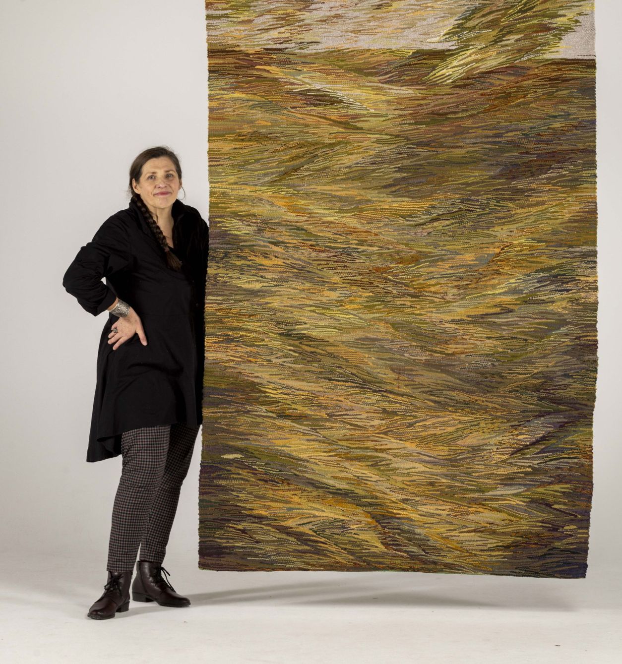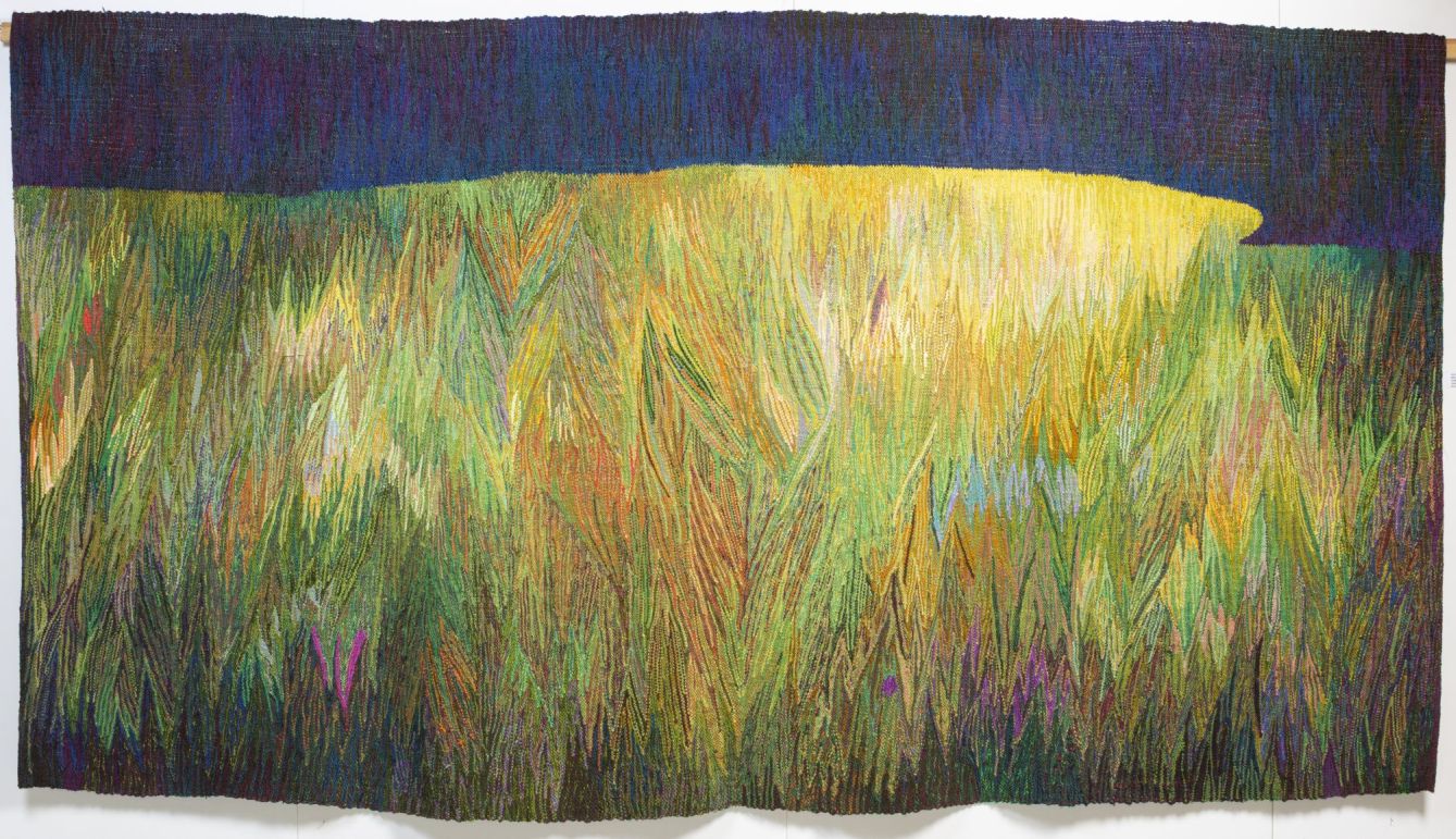 В центре экспозиции — цикл из 20 гобеленов художницы Иветы Веценэне, созданных в течение девяти лет. Это визуальная поэма о луге — о его сменчивой красоте, богатстве оттенков и бесконечном источнике вдохновения. Работы Веценэне выполнены в классической технике ручного ткачества, соединяя ремесленную точность с живописной экспрессией и тонким чувством цвета.