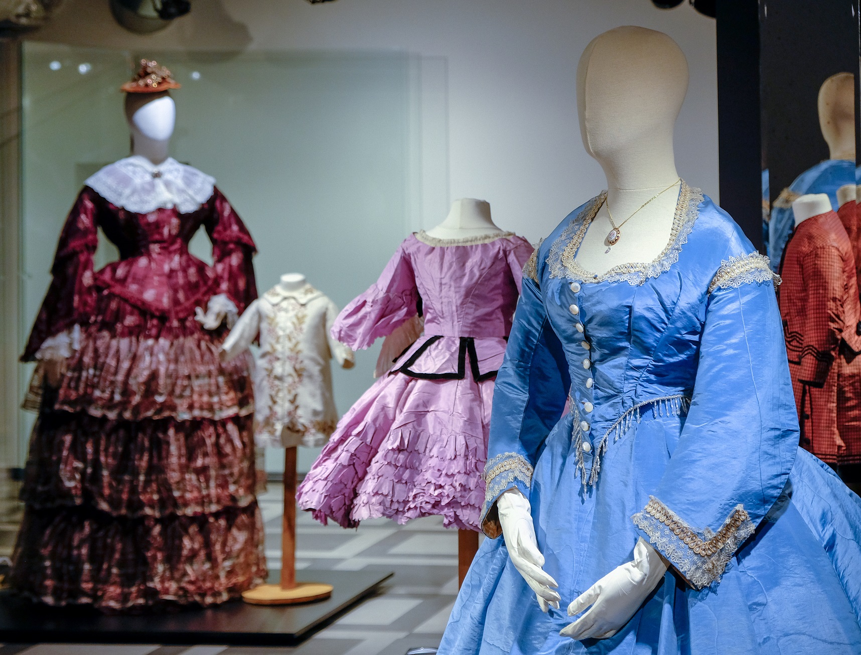 В центре внимания выставки – вызывающий умиление образ матери и ребенка. Менялись времена, менялся и этот образ, а мода мгновенно реагировала на эти изменения: от викторианского культа семьи и добродетели, строгих правил приличия и непреложных требований к одежде, которые соблюдали не только взрослые, но и дети, до огромных перемен после Первой мировой войны и более свободного подхода 20 века к одежде, которая предназначалась специально для детей и учитывала их потребности. Посетители выставки смогут увидеть как объемные женские наряды 19 века с кринолинами и турнюрами, так и очаровательные детские платьица и костюмчики этой поры, элегантные наряды первой половины 20 века и яркие образцы современной моды, а также обувь, головные уборы и игрушки.