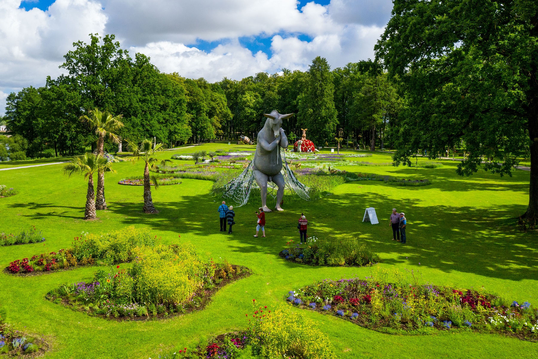 Если зимой Пакруойская усадьба , расположенная всего в 60 км от Риги, приглашает гостей полюбоваться ледовыми скульптурами и китайскими фонариками, то летом – здесь все усыпано цветами: второе год здесь проводится фестиваль «Сон в летнюю ночь». В окружении тысяч разноцветных летних растений, миллионом цветов и цветочных композиций красуются скульптуры высотой 2-6 метров. Усадьба, в которой кипит жизнь 19 века, превращена в сцену, где ставится одноименная пьеса Шекспира. Так что посетители могут не только полюбоваться цветами, но в выходные даже стать зрителями разворачивающегося на их глазах действа. Более того, не только зрителями, но и участниками комедийных ситуаций, которые поставил испанский режиссер Адриан Шварцштейн.