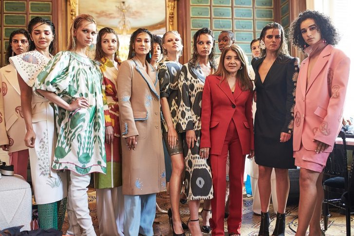 “В новой коллекции отображена любовь и уважение к узбекскому шелку и кропотливой работе мастериц. Для создания образов использована ручная вышивка и шелк ручной работы, техника пэчворк. Образы коллекции — дань уважения нашим традициям и обычаям, которые объединяют два главных текстильных направления, переданных от предков”, — делится дизайнер бренда Moel Bosh Зухра Инат.