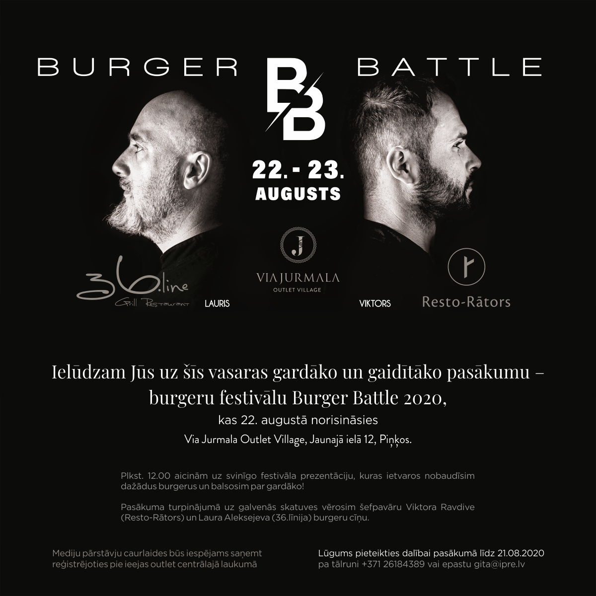 22 августа в 12 часов шеф-повара Лаурис Алексеев (36.līnija) и Виктор Равдиве (Resto-Rātors) откроют международный фестиваль бургеров Burger Battle 2020. Параллельно с приготовлением бургеров во время фестиваля пройдут веселые конкурсы, а также у гостей фестиваля будет возможность познакомиться с искусством граффити и поучаствовать в выборе самого вкусного бургера, который получит титул Sexy Pepsi. В 17:00 шеф-повар Мартиньш Ритиньш даст оценку приготовленным бургерам.