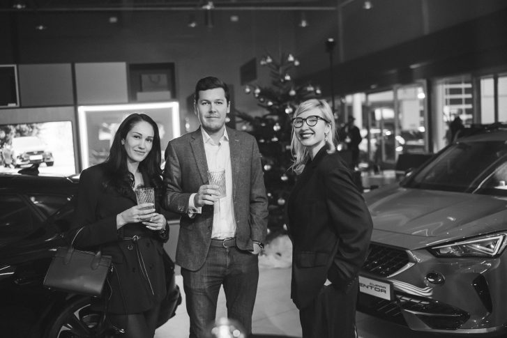На открытии концептуального салона собрались знаменитости, клиенты Autobrava Motors и партнеры бренда CUPRA. Динамичную атмосферу мероприятия обеспечивал стендап-комик Рудольф Кугренс, а за барной стойкой можно было увидеть Гвидо Элксниса, который является не только страстным дрифтером, но и амбассадором бренда виски Monkey Shoulder. Также посетителей мероприятия порадовало яркое музыкальное сопровождение DJ Dubra.
