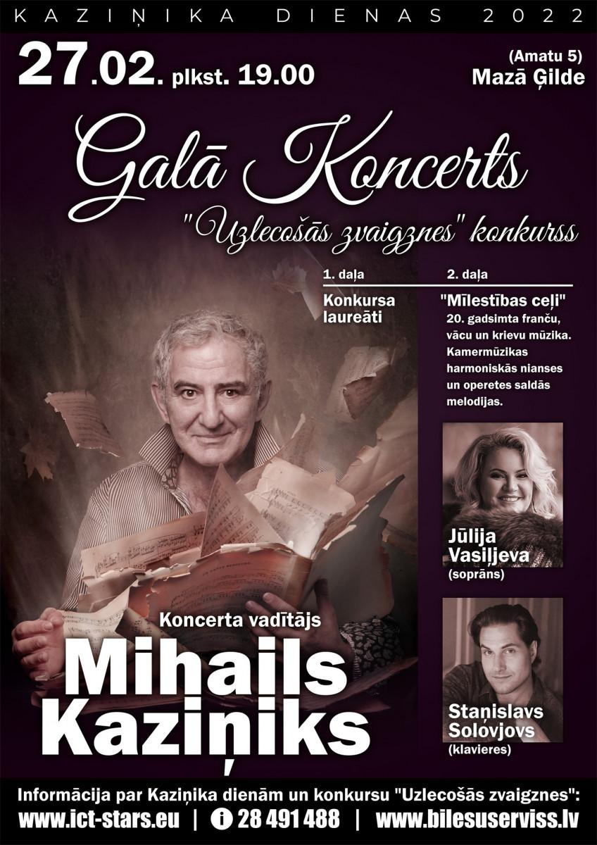 27 февраля в 19.00 в Малой Гильдии состоится заключительное мероприятие Дней Михаила Казиника в Риге — Гала-концерт конкурса «Восходящие Звезды» с участием победителей и членов жюри — примы Латвийской Национальной оперы Юлии Васильевой и известного пианиста из Санкт-Петербурга Станислава Соловьёва.