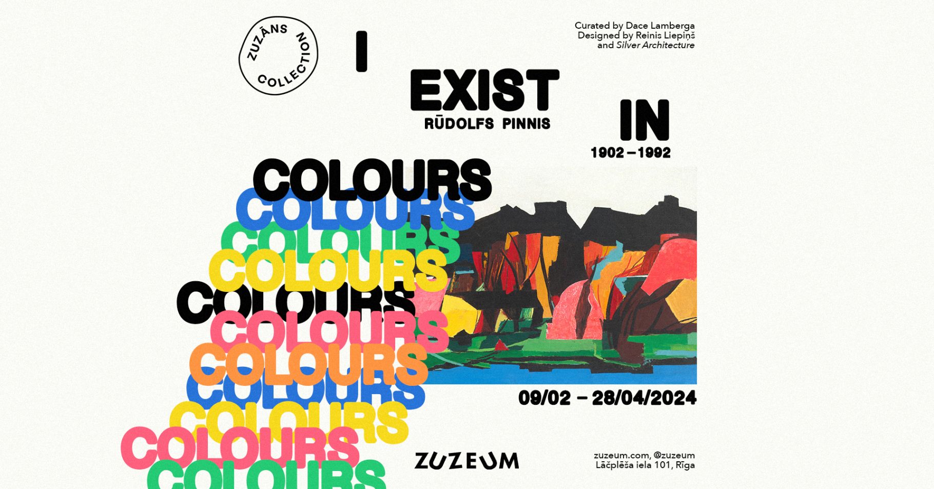 С 9 февраля до 28 апреля 2024 года в Малом выставочном зале арт-центра Zuzeum будет проходить выставка Рудолфcа Пинниса «Я живу в цвете». Этой выставкой арт-центр запускает новую выставочную концепцию, в рамках которой Малый выставочный зал используется как независимое арт-пространство – белый куб, позволяющий посетителю глубже заглянуть в мир искусства одного автора.