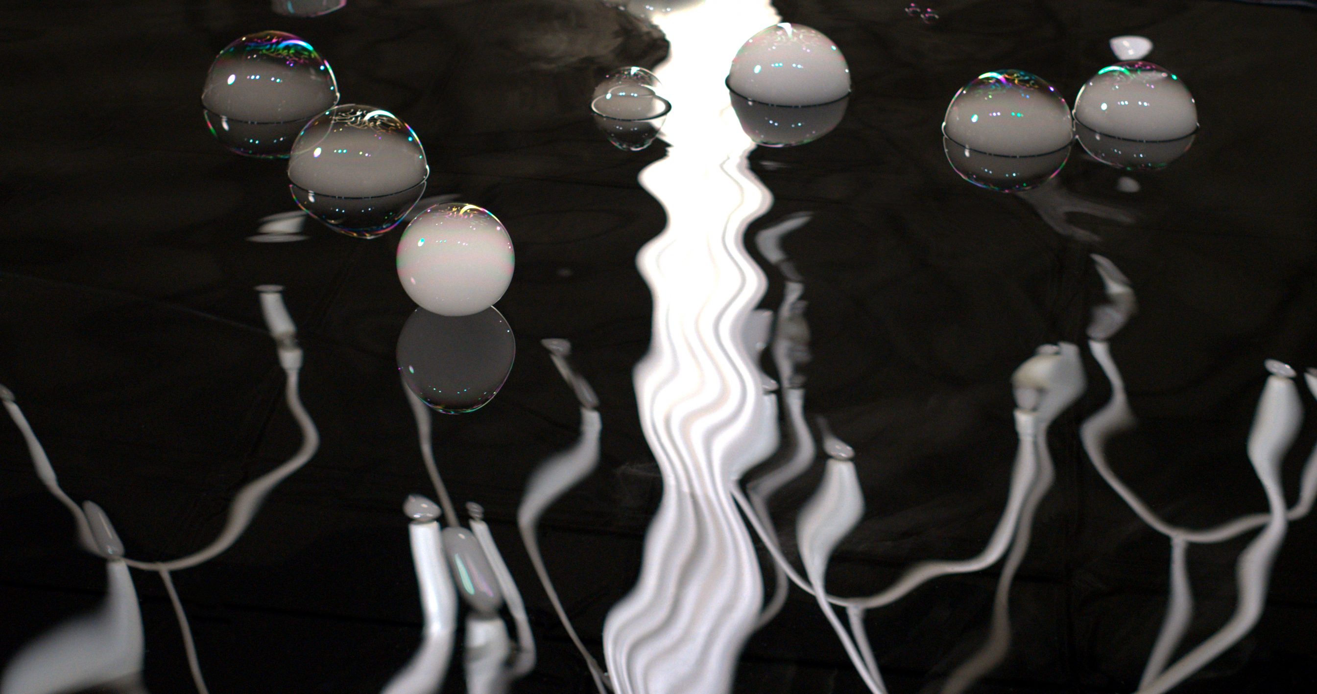Studio Swine добавляет: “New Spring — это история об универсальности, очень простая, минималистичная работа, а это означает, что ее можно интерпретировать по-разному. Для нас большое удовольствие показать инсталляцию в различных условиях. В Шанхае New Spring взаимодействует с характером города, становится ивой в китайском саду, гламурным арт деко Бунда. Шары с туманом напоминают цветы магнолии, жемчужины или небольшие нисходящие полные Луны.”