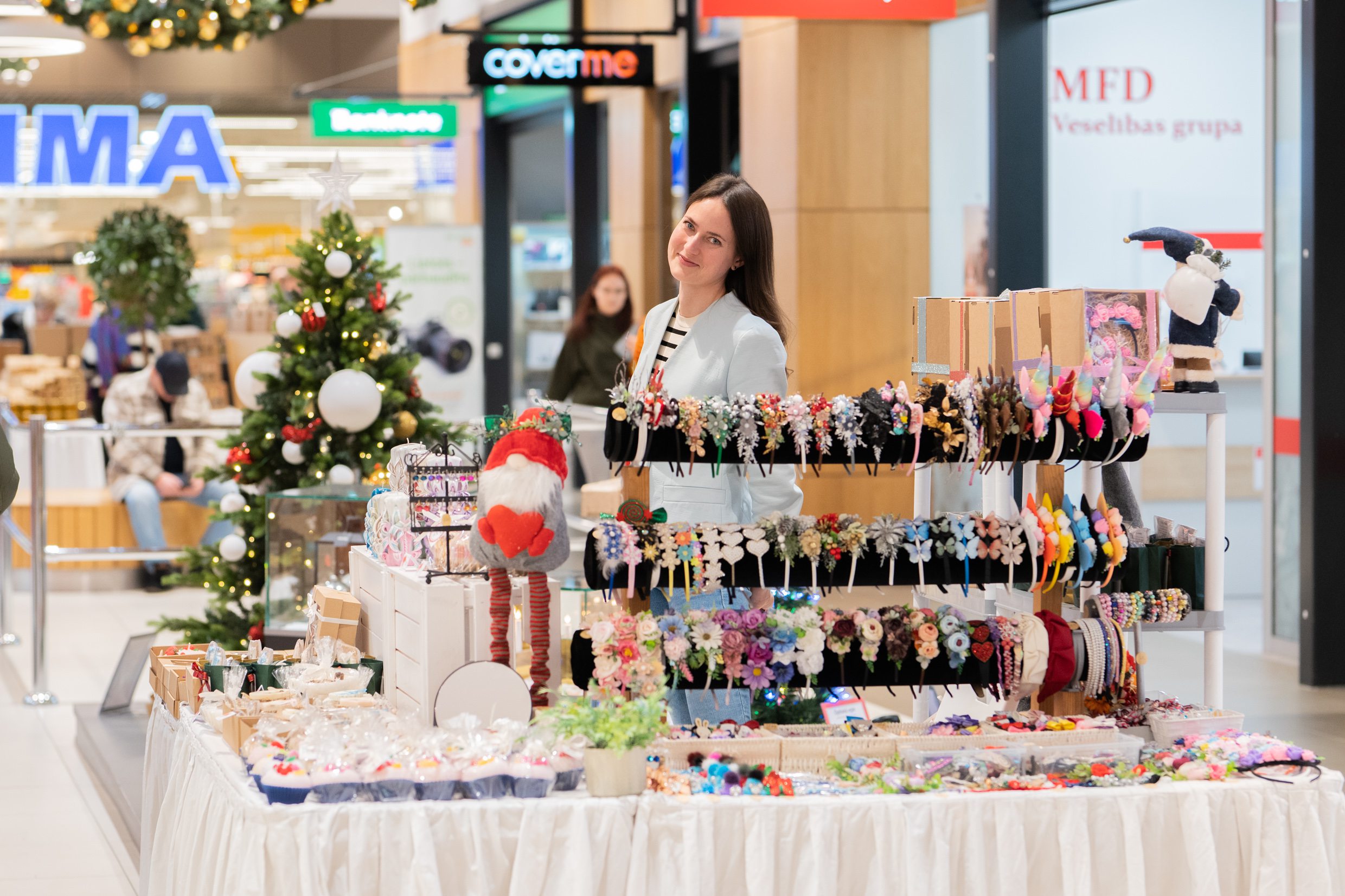 Косметика, украшения и одежда. Приятные, роскошные и практичные подарки – все это можно найти на ярмарке в Domina Shopping. Ассортимент косметических средств включает в себя разнообразное дизайнерское мыло, натуральную косметику, скрабы, бальзамы для губ, шарики для ванн и др. В категории украшений – изделия из серебра, кожи, камня, перьев и других материалов. Представлена также одежда латвийского производства для взрослых и детей, в том числе шерстяные варежки и патриотические свитера с надписями “Latvietis” и “Latviete”.