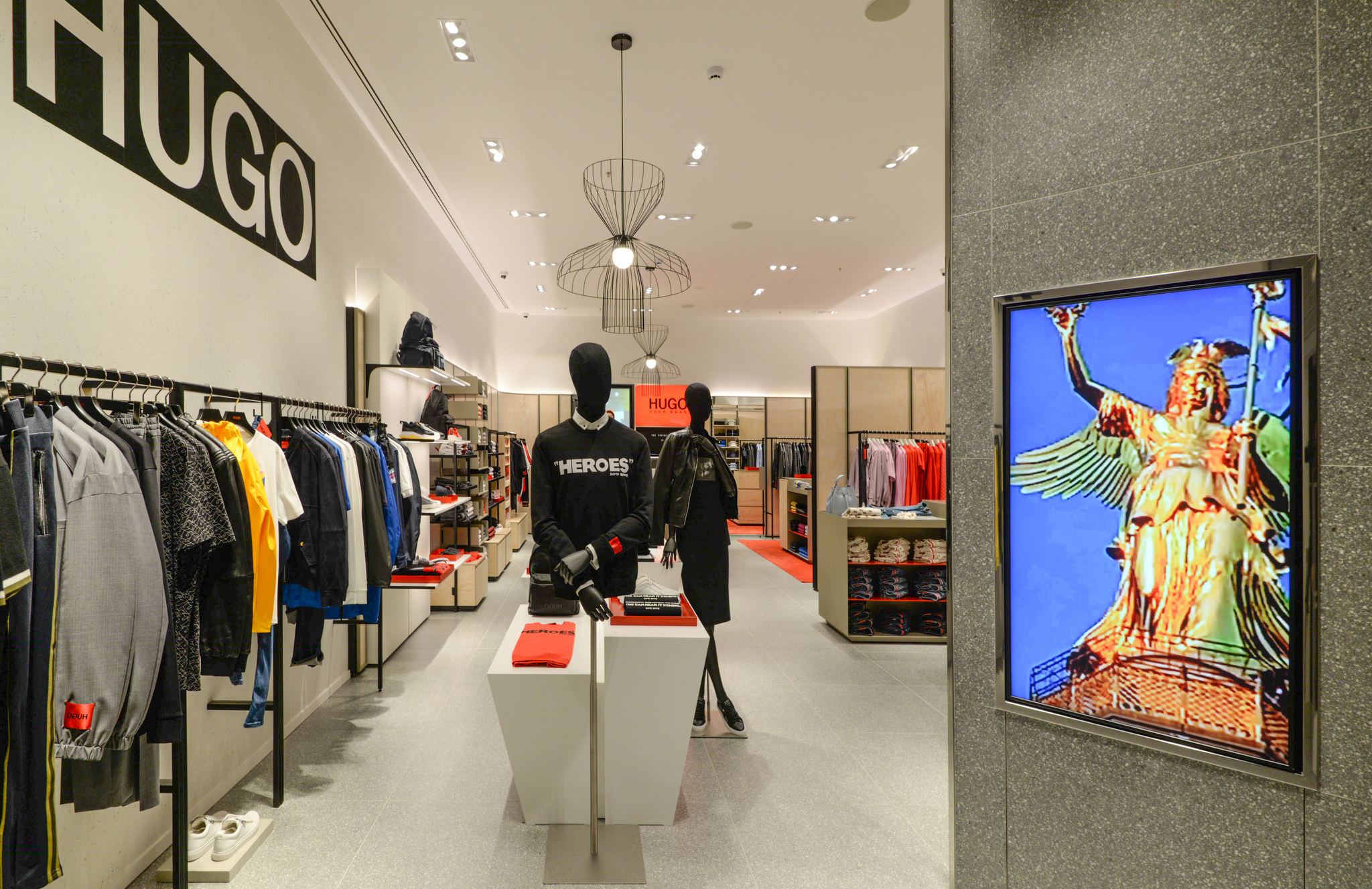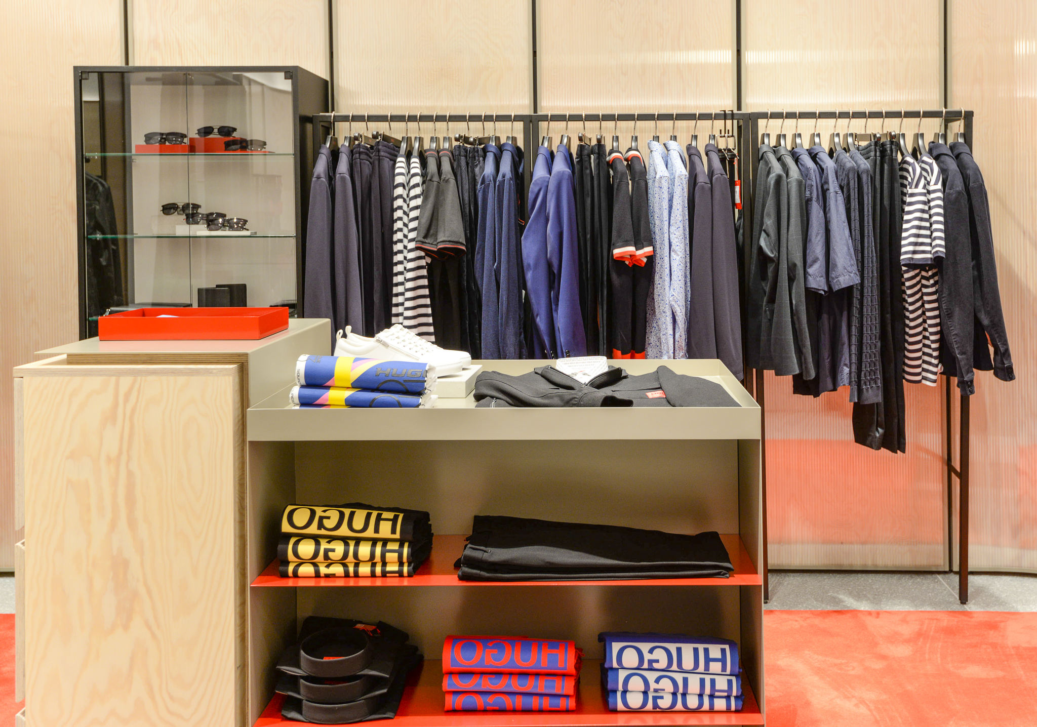 Концепция нового магазина HUGO предусматривает привлекательную атмосферу и вдохновляющий опыт для клиентов. В центре магазина будет находиться многофункциональный сервисный пункт, который объединит в себе цифровые мультимедийные элементы с атмосферой типичного бара и станет для клиентов уникальным местом, где хочется задержаться. Использование красного цвета в различных элементах магазина HUGO будет способствовать ярко-выраженной узнаваемости бренда, а мебель необычной формы воплотит в себе дух HUGO. Общее оформление магазина представит бренд HUGO в совершенно новом облике – нетрадиционном и иконическом.