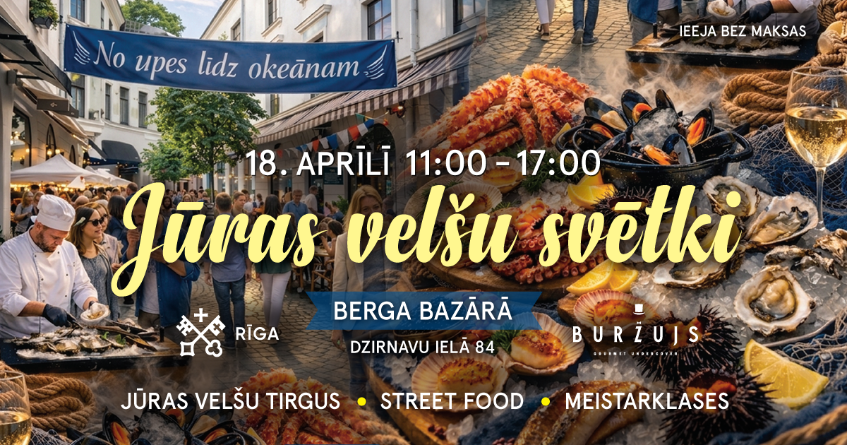 Рига готовится к новому гастрономическому событию: в субботу, 18 апреля, исторический центр города на один день станет пространством, где морская тема выйдет далеко за пределы привычного ресторанного формата. С 11.00 до 17.00 в Berga Bazārs пройдёт первый праздник морепродуктов «От реки до океана» — событие, рассчитанное не только на любителей гастрономии, но и на тех, кто хочет понять, как устроен современный мир рыбы, моллюсков и других даров воды.