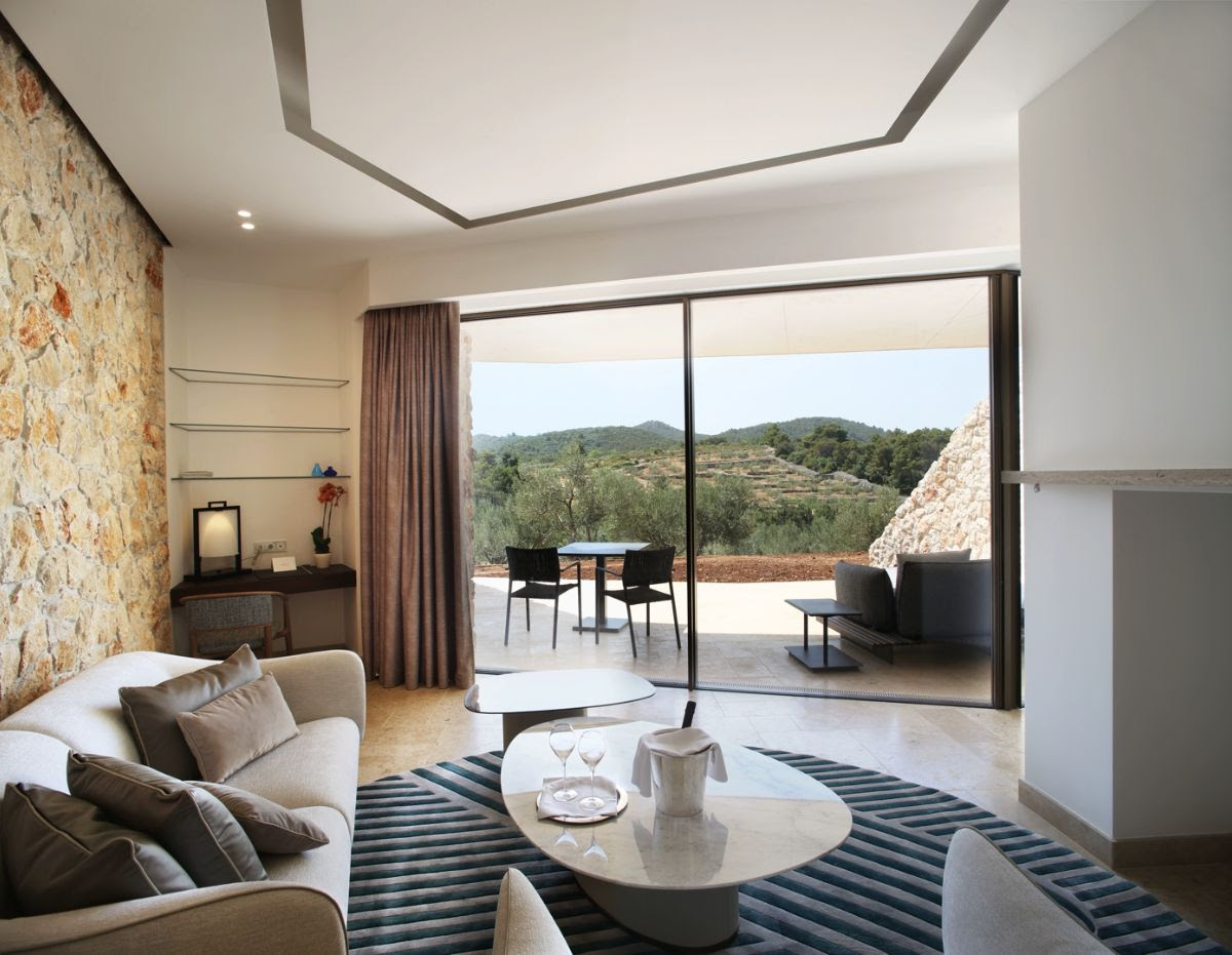 Гармонично вписываясь в окружающий природный ландшафт Национального парка Корнаты, отель подчеркивает первозданную красоту этого удивительного места. Помимо уникальной локации Villa Nai 3.3 также может похвастаться исключительным сервисом и невероятным уровнем приватности. Это курорт с пометкой adults only — только для взрослых и подростков, начиная с 12 лет. Его номерной фонд состоит всего из восьми комнат и сьютов, каждый из которых имеет свою собственную террасу. Из окон номеров открывается невероятный вид на Адриатическое море и на живописные оливковые рощи. Дизайн интерьеров выполнен в приглушенной пастельной гамме с акцентом на природные материалы, вроде камня и дерева. Мебель была также подобрана с особым вниманием: специально для отеля ее создали итальянские мастера бренда Giorgetti.