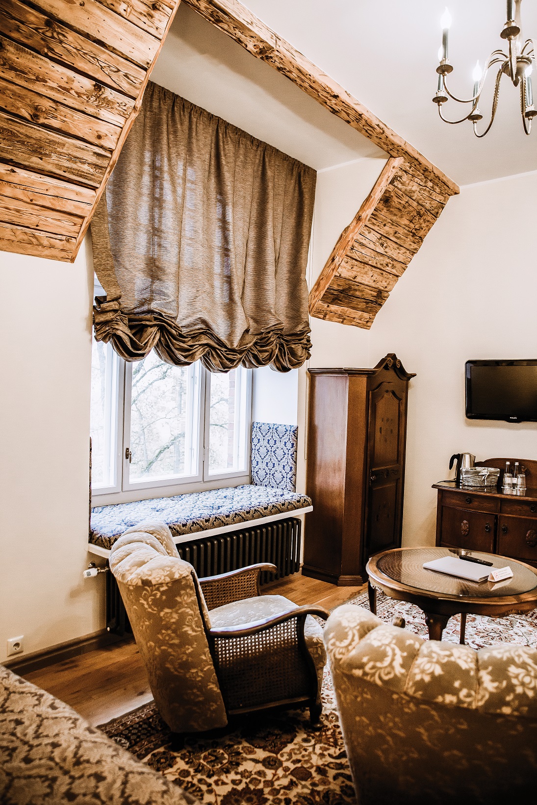 Каждый номер в отеле продуман до мелочей и не похож один на другой. Есть романтичный номер с балконом для влюбленной пары, есть семейный — на четверых, есть номера категории Suite, а есть и экономкатегории. Здесь любят животных, и собственный охранник — кот Роберт — встречает всех гостей. Рядом с усадьбой находится парк, посаженный еще в XIX веке. Поэтому хочется никуда не спешить, наслаждаясь видом на Кулдигу, тишиной и покоем настоящего баронского поместья. До центра старой части города от Virkas muiža 15 минут ходьбы, но если эта нагрузка не для вас, то у комплекса, в который входит не только старинная усадьба, есть и другие варианты.