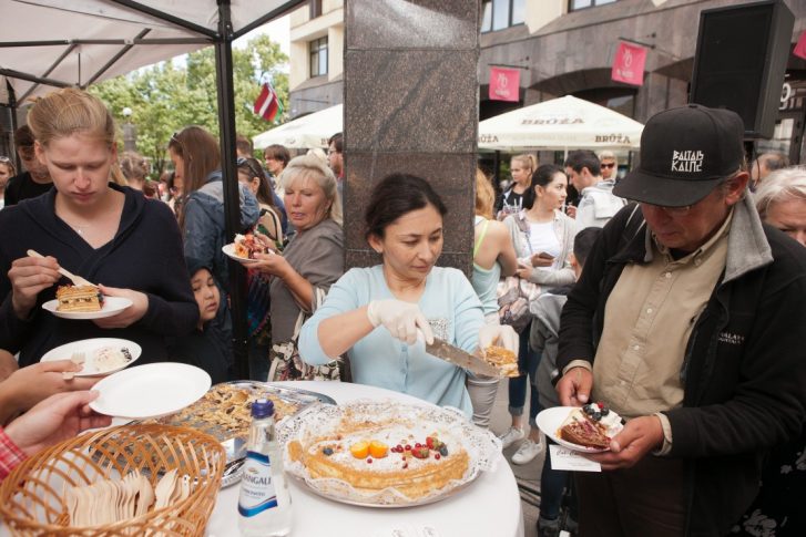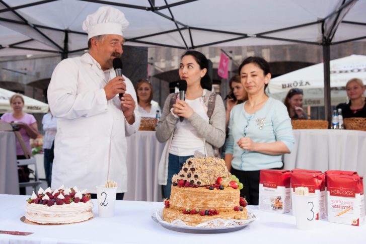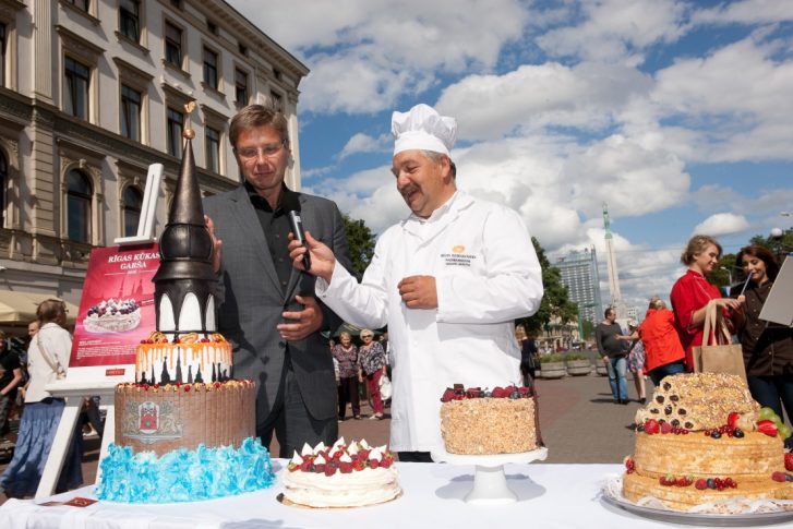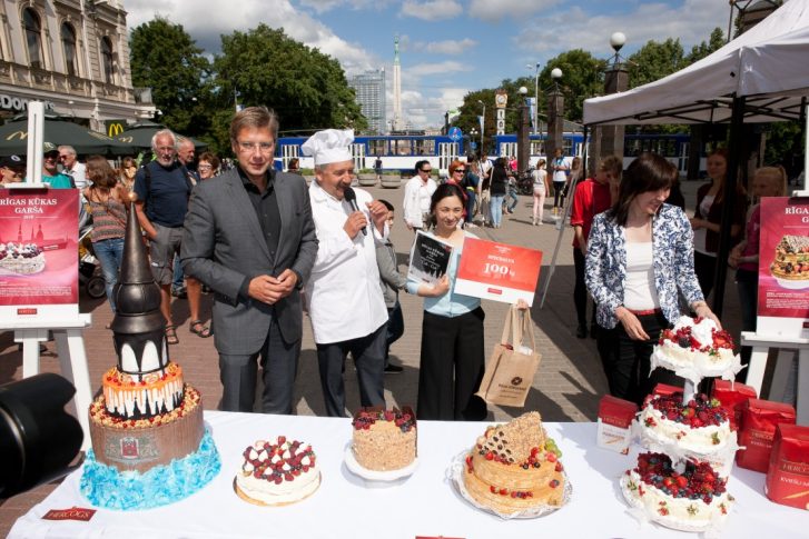 В рамках празднования «Праздника Риги», который стартует уже в пятницу, в центре города прошел необычный конкурс «Вкус торта Риги», организованный Rīgas Dzirnavnieks совместно с пекарем Эдгаром Гравитисом.