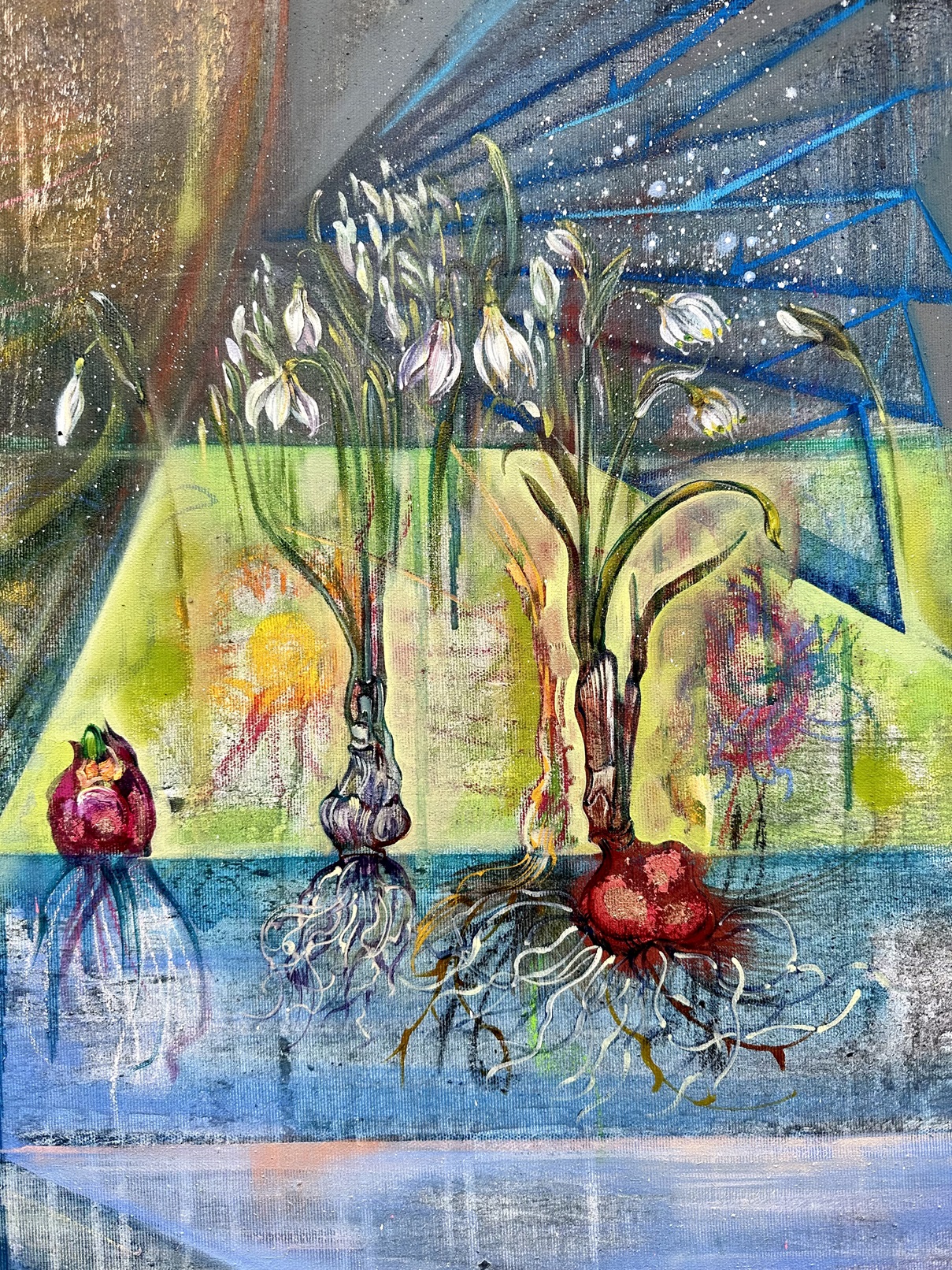 Основная экспозиция будет проходить в пространстве для мероприятий «Šķūnis». Эти ботанические фантазии написаны на золе из костров и печек нашего сада, в которых, возможно, сгорели прошлогодний венок Яновой ночи и новогодняя елка. В такой грунт традиционно добавляют мёд, чтобы сделать холст более пластичным, поэтому не удивляйтесь, если Вам вдруг покажется, что в этих холстах жужжат пчелы…