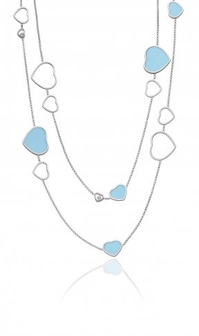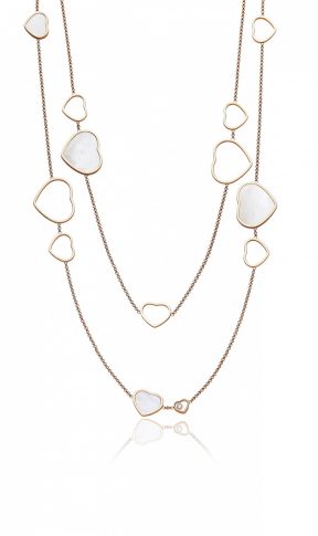 Коллекция Happy Hearts — это линия дневных украшений, флагманской вещью которой стал длинный золотой сотуар, украшенный сердцами. «Сотуар, говорит Каролина Шойфеле, — очень женственная и сентиментальная драгоценность, которой свойственно особенное очарование и невероятное кокетство».