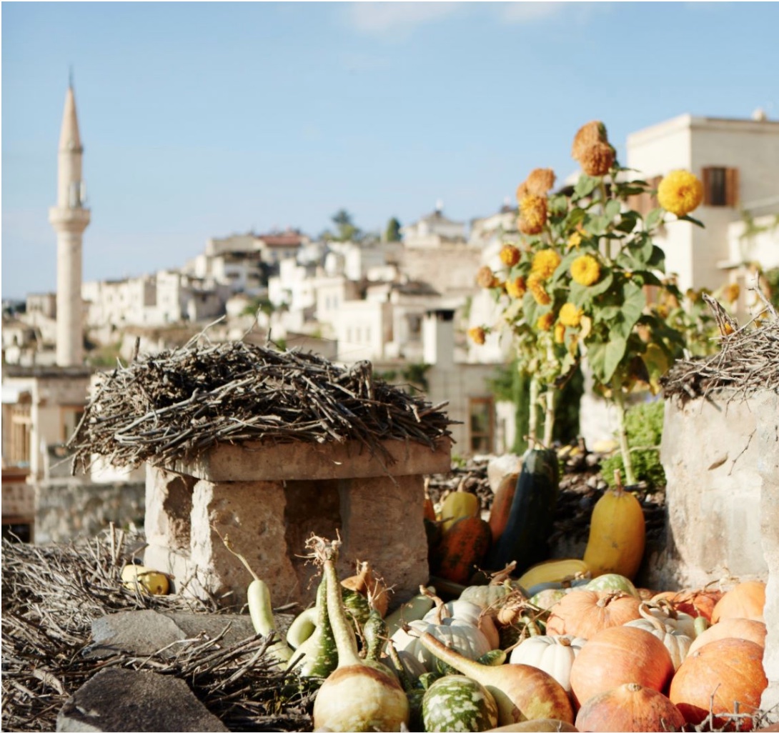 У каждого времени года своя история, и осень в Argos in Cappadocia – это время урожая. Отель, расположенный на месте древнего монастыря, давно взял курс на устойчивое развитие, поддержку местных ремесел, кулинарных традиций и работу с локальными продуктами. Ресторан Seki, что в переводе с турецкого значит «Террасы», потому что он расположен на горном склоне, который террасами спускается в долину, радует гостей фруктами, овощами, травами, выращенными в собственных органических садах и огородах. У отеля есть роскошный фруктовый сад, на котором плодоносят 1800 деревьев; надо ли говорить, что все джемы и сухофрукты в Argos in Cappadocia – собственного производства? Шеф ресторана Огюзхан Пюрделоглу придерживается философии «нулевой мили», предполагающей, меню, максимально основанное на свежем урожае со своего сада и огорода с июня по октябрь, а также сушеных и ферментированных местных продуктах в остальное время года. Возможно, поэтому Seki – самый обласканный международными наградами ресторан Каппадокии.
