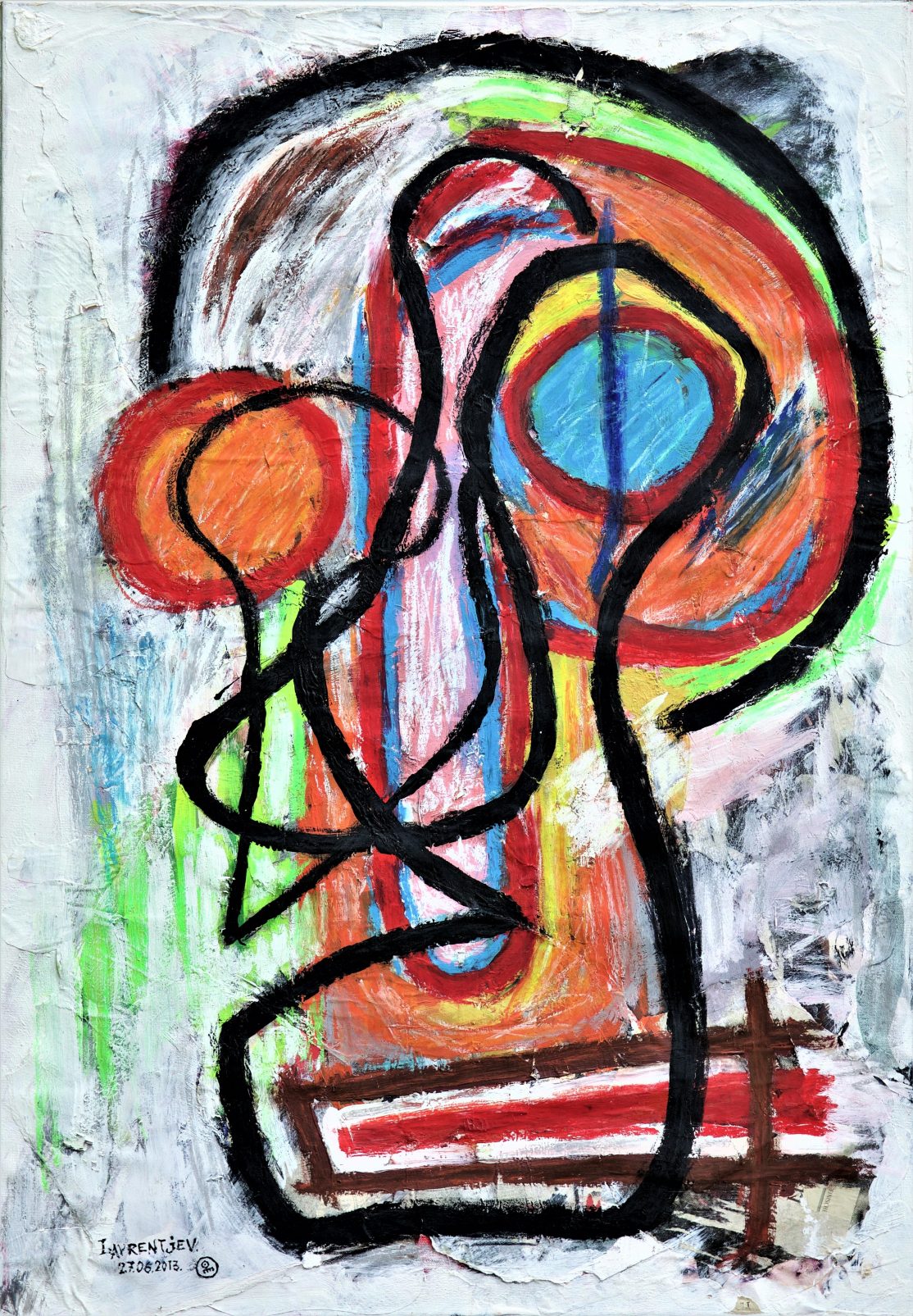 Яркие цветовые контрасты, четкие линии и динамичные штрихи — неотъемлемые черты художественного почерка Дмитрия Лаврентьева. Склонность к выразительности, деформации и преувеличению придает композициям художника небольшую дозу архаичных выражений, а его живопись остается сложной и удивительной.