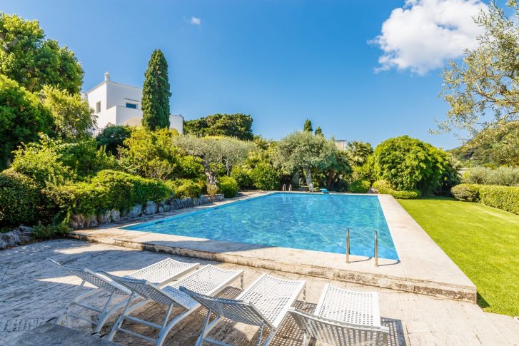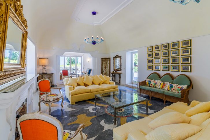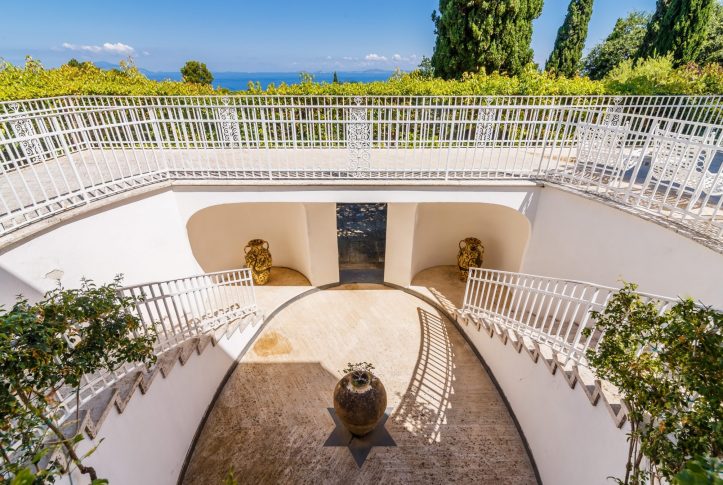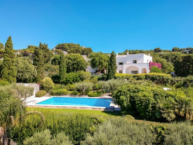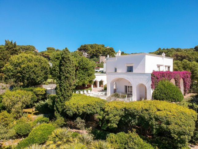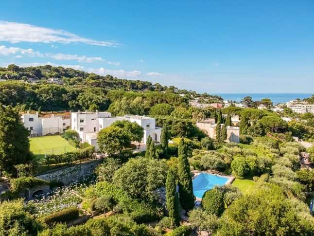 Вилла окружена ботаническим парком в 150 растений; сама структура состоит из двух зданий. Основная вилла имеет 800 кв. м., флигель – 400 кв. м. Здания отличаются архитектурой стиля Капри, для которой характерно использование белого известняка. Оба здания были в недавнем времени полностью отреставрированы нынешними владельцами; в здании были сохранены оригинальные напольные покрытия из декорированной керамики, мрамора и паркета каштанового дерева. Основная вилла состоит из четырех этаже; на ее первом этаже расположены приемные салоны с антикварной мебелью, выходящие в патио и на веранды. Второй этаж отведен под четыре спальни для гостей с ванными и гардеробными. Третий этаж – под хозяйские покои с двумя спальнями, ванными и большой гостиной. На третьем этаже также расположена дополнительная спальня с ванной и гардеробной, а также с выходом на террасу. Вилла оснащена системой домашнего видеонаблюдения и кондиционером. Стоит особенно отметить и флигель, предназначенный для гостей; он был построен в 50-х годах и состоит из трех этажей. Ухоженный парк с садом украшает бассейн, декорированный мозаикой Бисазза, а также площадка для тенниса или футбола.