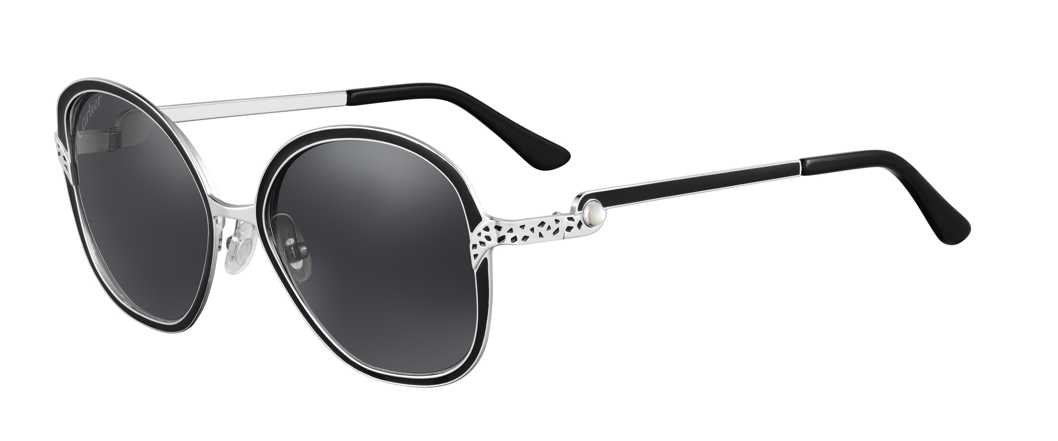 Ювелирный дом Cartier представил четыре новых модели солнцезащитных очков, объединив их в одну коллекцию Panthere Devine. Две модели выполнены в форме «кошачий глаз» (ну куда же без любимой Домом хищницы), две – в прямоугольной оправе. Дужки очков украшены кабошоном из оникса или перламутра, дужки очков в форме «кошачий глаз» украшены «лаковыми пятнами», что еще больше роднит аксессуар с легендарной пантерой — символом Cartier.