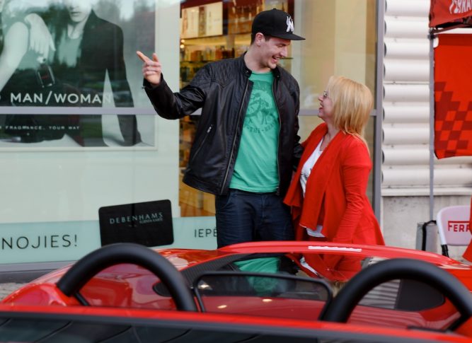 «На мой взгляд, это очень женский автомобиль. Быстрый, мощный и красивый», — описала свои первые впечатления от спорткара Иева Александрова-Эклоне. В пробной поездке актрисе пришлось соблюдать ограничения скорости, теперь в планах гонщицы испытать Ferrari F360 по полной программе. — «Очень хочется погонять на этом суперавтомобиле на закрытой трассе, чтобы почувствовать все его возможности. Думаю, что наши темпераменты совпадают», — загорелась идеей Иева.