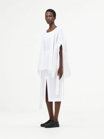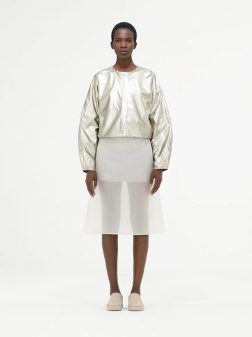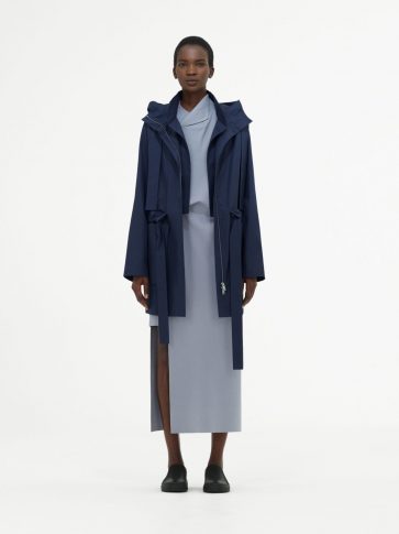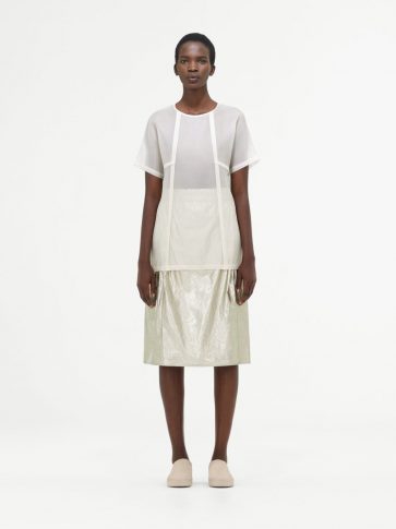 Прозрачный, легкий нейлон и воздушный хлопок противопоставляются материалам с отличной фактурой, создавая композицию, в которой встречаются техническое с натуральным.