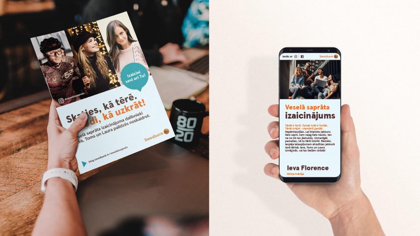 Нам самим интересно работать с клиентом, у которого есть не только желание заработать. Когда в его продукте есть социальная составляющая. Например, один из наших клиентов – Swedbank – предложил нам принять участие в подготовке Праздника песни. Это была огромная кампания, в которой было задействовано множество информационных каналов. Причем у каждого из них была своя аудитория, а значит и реклама должна была быть совершено разной. Так как нам нужно было не просто имиджи поставить, но достучаться не до тех, кто и так принимает участие в празднике, а заинтересовать тех, кто не поет. Это был вызов нам. И нам нравятся такие проекты.