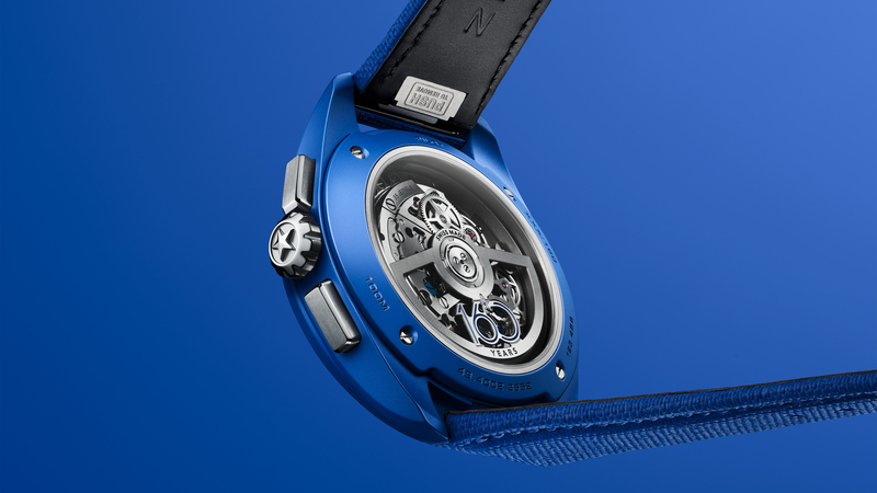 К моделям этой эксклюзивной лимитированной серии из 160 экземпляров прилагаются синий каучуковый ремешок с имитацией ткани Cordura и дополнительный белый ремешок, также с имитацией ткани Cordura. Оба ремешка замыкаются тройной раскладывающейся застежкой из стали. Простая в применении система смены ремешка позволяет заменить ремешок быстро и без применения инструментов, что делает эти часы еще более удобными и универсальными.