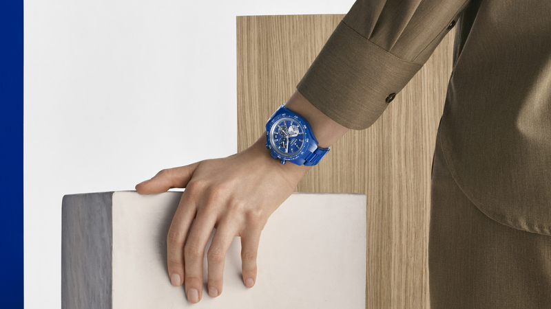 Модель CHRONOMASTER Sport 160th Anniversary Edition поставляется с двумя ремешками: синим керамическим браслетом с керамической раскладывающейся застежкой и синим каучуковым ремешком со стальной раскладывающейся застежкой.